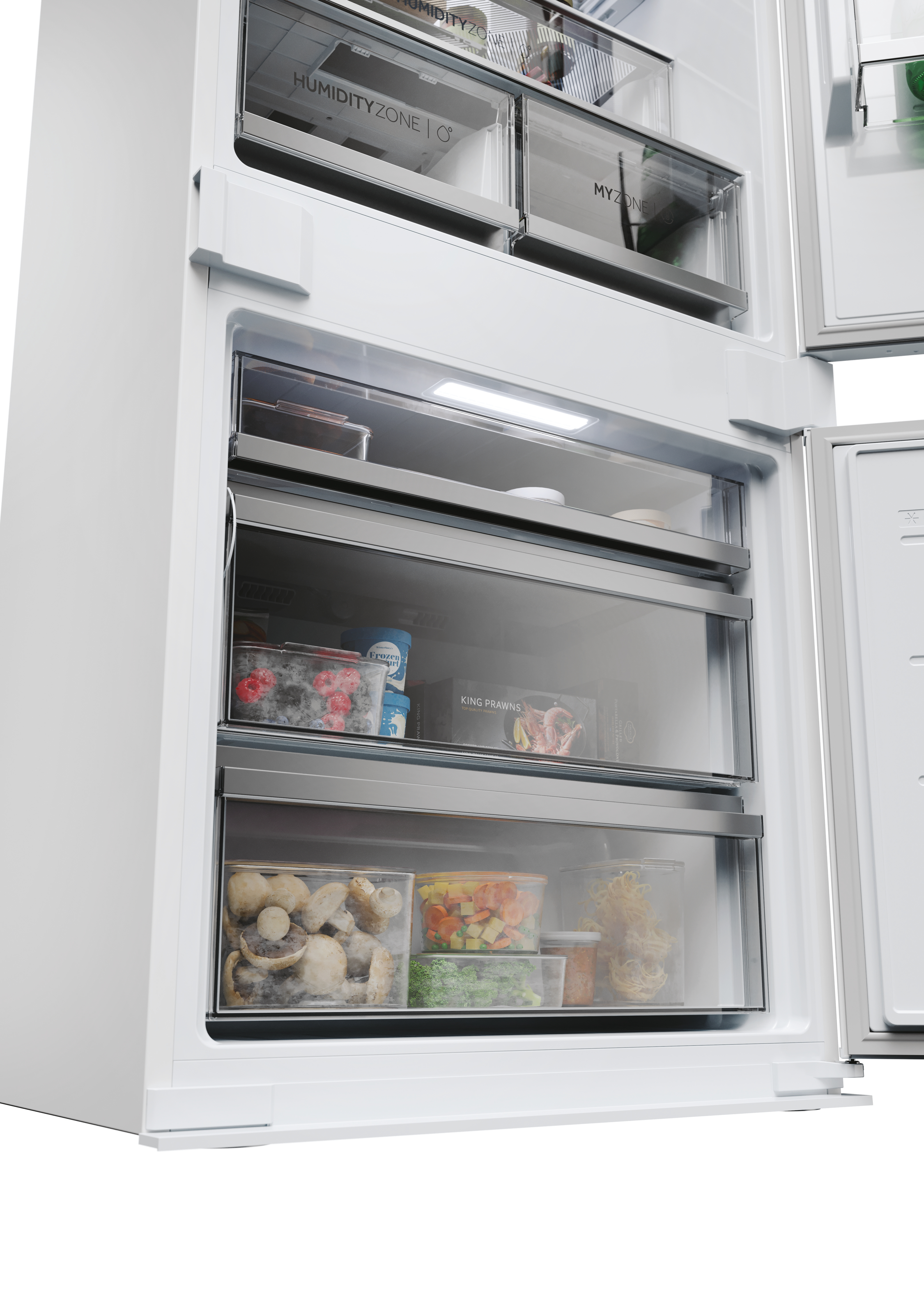 Il sistema di illuminazione dei frigoriferi Haier ID Titanium Serie incorpora il led Daylight e una luce nel freezer* per una maggiore visibilità. Con Daylight, ogni ripiano e angolo del tuo frigorifero è illuminato, assicurando che nessun articolo passi inosservato. Rifornisci e organizza il tuo frigorifero senza sforzo grazie all'illuminazione graduale e a 360°, rendendo più facile disporre gli articoli esattamente dove li vuoi. Inoltre, la migliore visibilità si estende anche al freezer*. *Disponibile solo su modelli selezionati.