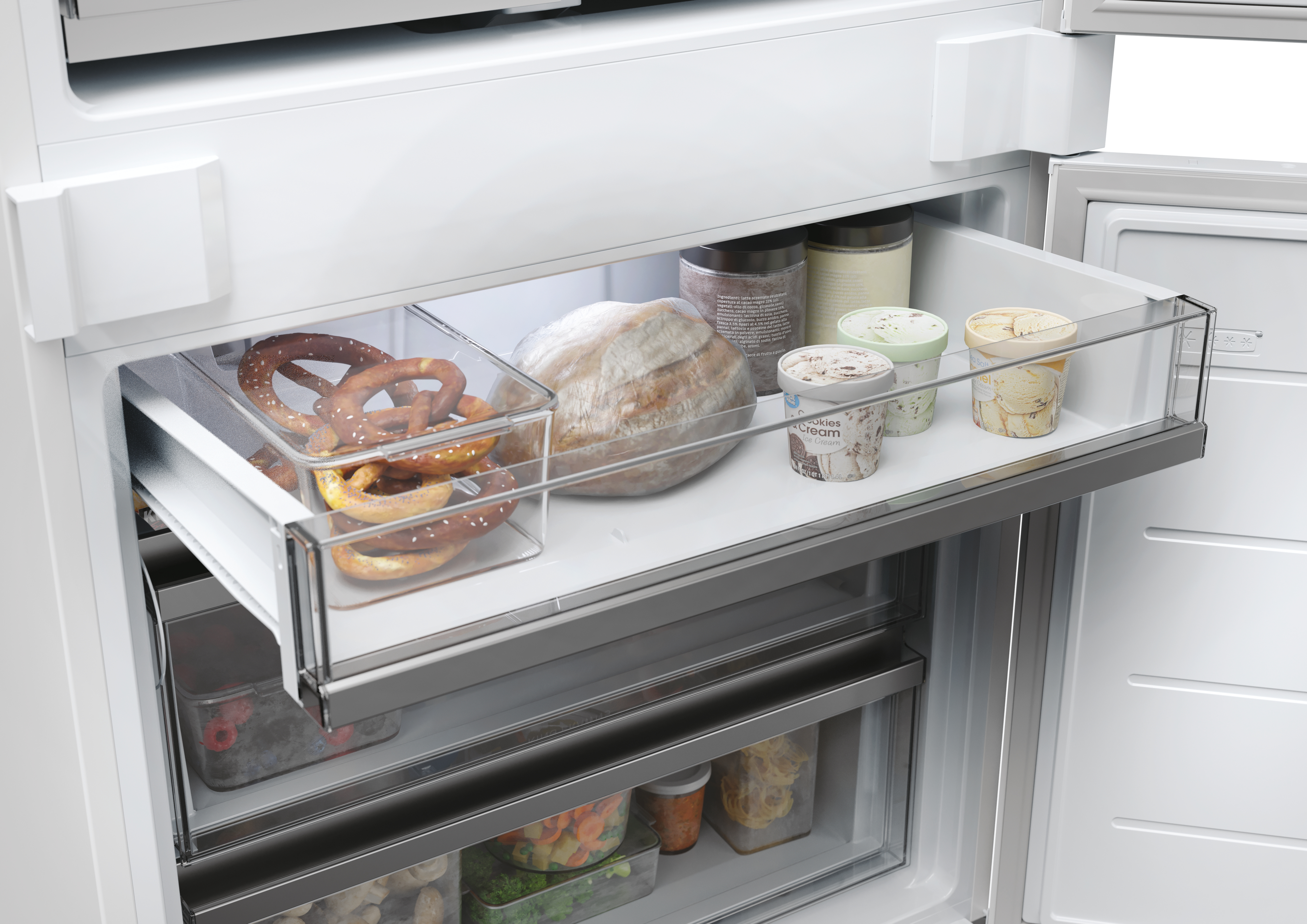 Scopri la capacità di conservazione superiore del nostro frigorifero da incasso pari a 400 litri:conserva senza sforzi tutti i tuoi alimenti e le bevande fresche. Che si tratti di frutta, verdura, pesce o bevande, puoi tenere tutto organizzato nel modo più efficiente.