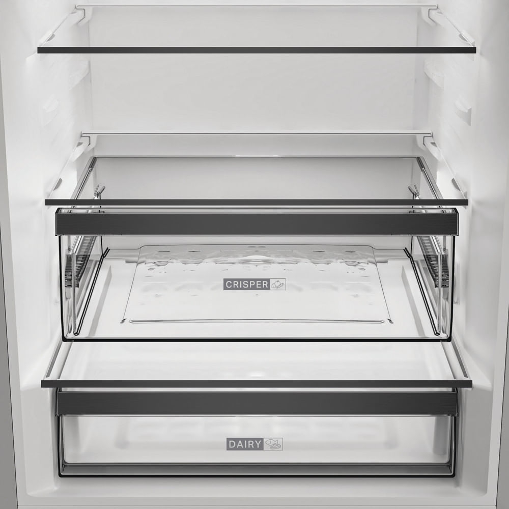 Due sistemi di raffreddamento indipendenti No Frost creano l'ambiente ideale per la conservazione degli alimenti, senza formazioni di brina, garantendo la temperatura e l'umidità ideali ed evitando la miscelazione degli odori all'interno della cavità. Puoi posizionare frutta e verdura ovunque nel frigorifero, Dual No Frost le manterrà fresche fino a 15 giorni*.