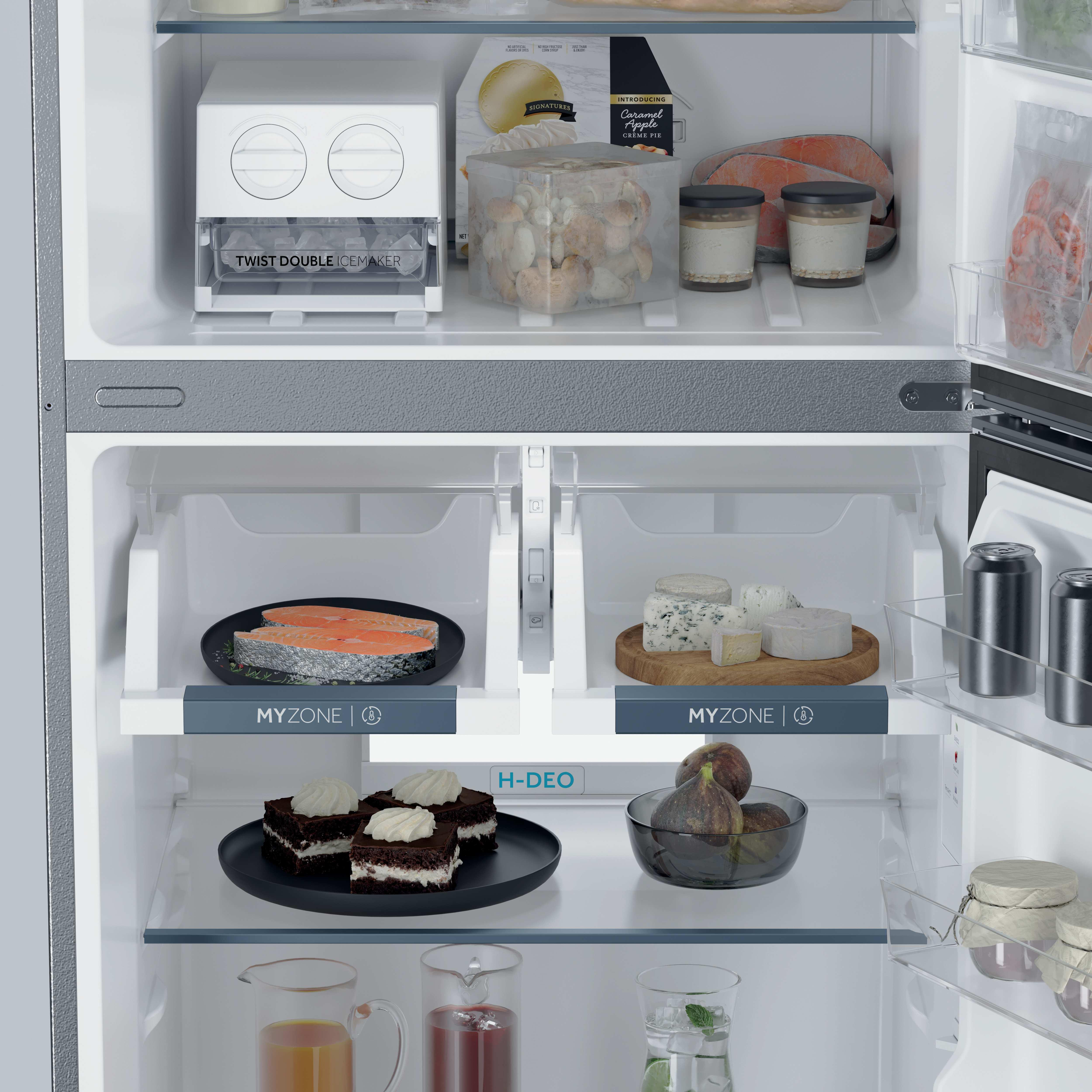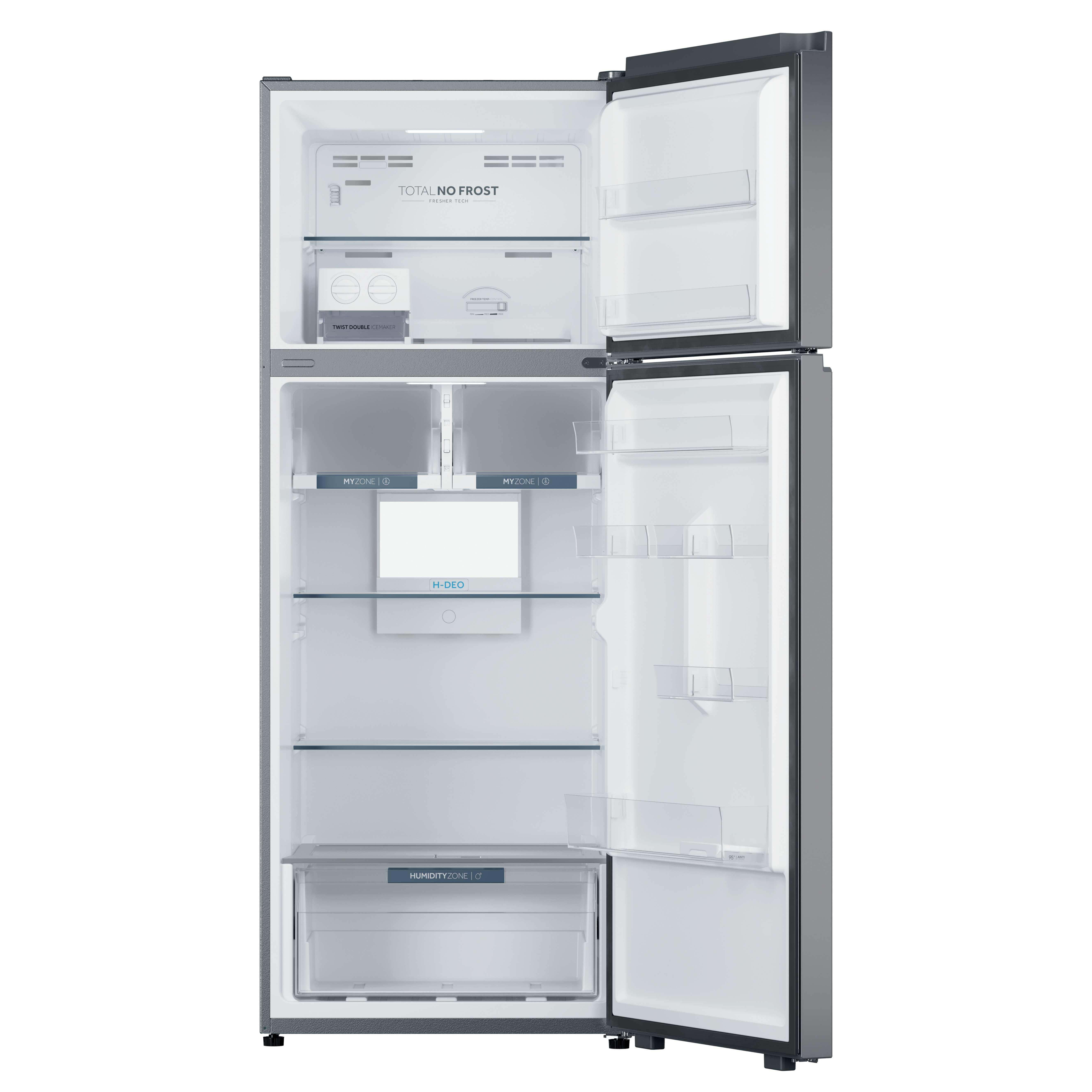 Haier HPR5718ENMX. Capacità netta totale: 464 L. Cerniera porta: Destra. Classe climatica: SN-T, Emissione acustica: 38 dB. Capacità netta frigorifero: 366 L, No Frost (frigorifero), Sistema Multi-Airflow (frigorifero), Luce interna. Capacità netta congelatore: 98 L, Capacità di congelamento: 4,5 kg/24h, No Frost (congelatore). Compartimento zona fresca. Classe efficienza energetica: E, Consumo energetico annuo: 250 kWh. Colore del prodotto: Acciaio inox