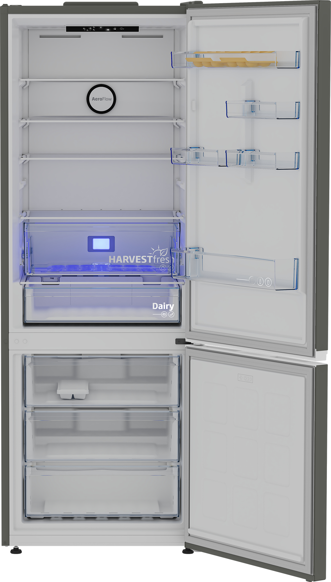 La natura appone la propria data di scadenza sui suoi doni. L'aspetto e la forma degli alimenti sono legati alla loro freschezza, e per mantenerla più a lungo è necessaria una cura delicata, proprio come in natura. L'innovativo sistema di raffreddamento AeroFlow™ di Beko diminuisce al minimo le fluttuazioni di temperatura all'interno del frigorifero, riducendo le differenze tra i ripiani con una distribuzione dell'aria omogenea per una freschezza duratura.Carne, pesce e latticini hanno bisogno di basse temperature per restare freschi. Lo scomparto Dairy li mantiene a un livello di umidità ottimale, preservando tutta la loro freschezza e il sapore per il doppio del tempo.