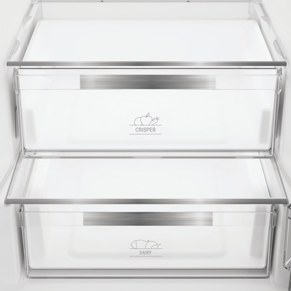 Il sistema di raffreddamento Even Flow mantiene i cibi freschi fino al 30%* più a lungo, facendo circolare delicatamente un flusso d’aria uniforme e costante su ogni ripiano. Questo avanzato sistema di ventilazione aiuta a ridurre la perdita di umidità, proteggendo frutta e verdura dalla disidratazione e preservandone sapore e nutrienti.
