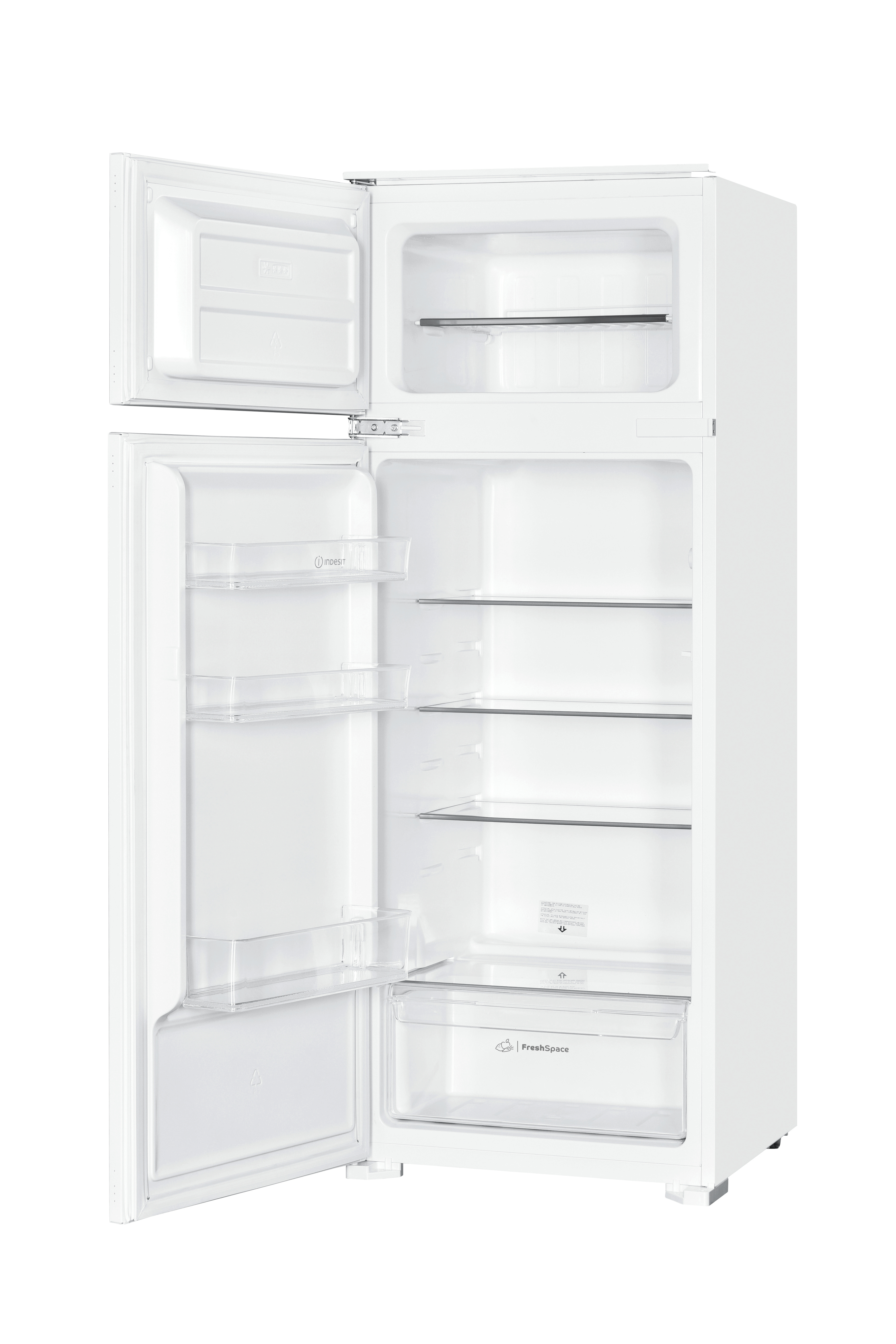 Indesit IN D 2040 E. Capacità netta totale: 205 L. Cerniera porta: Sinistra. Classe climatica: N-ST, Emissione acustica: 39 dB. Capacità netta frigorifero: 169 L, Luce interna, Numero di ripiani frigorifero: 4, Numero di cassetti per verdura: 1. Capacità netta congelatore: 36 L, Capacità di congelamento: 2,4 kg/24h. Compartimento zona fresca. Classe efficienza energetica: E, Consumo energetico annuo: 175 kWh. Colore del prodotto: Bianco