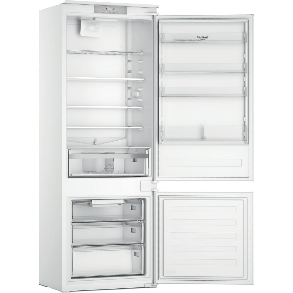 Caratteristiche di questo frigorifero combinato da incasso Hotpoint Ariston: modello alto e capiente, adatto per le esigenze di tutta la famiglia. Colore bianco. Ripiani in vetro con profili anteriori che aggiungono robustezza, eleganza e maggiore sicurezza. Flusso d’aria regolare e uniforme all’interno dell'elettrodomestico, per una ventilazione potenziata. Comodo porta-bottiglie per conservare le bottiglie con sicurezza.