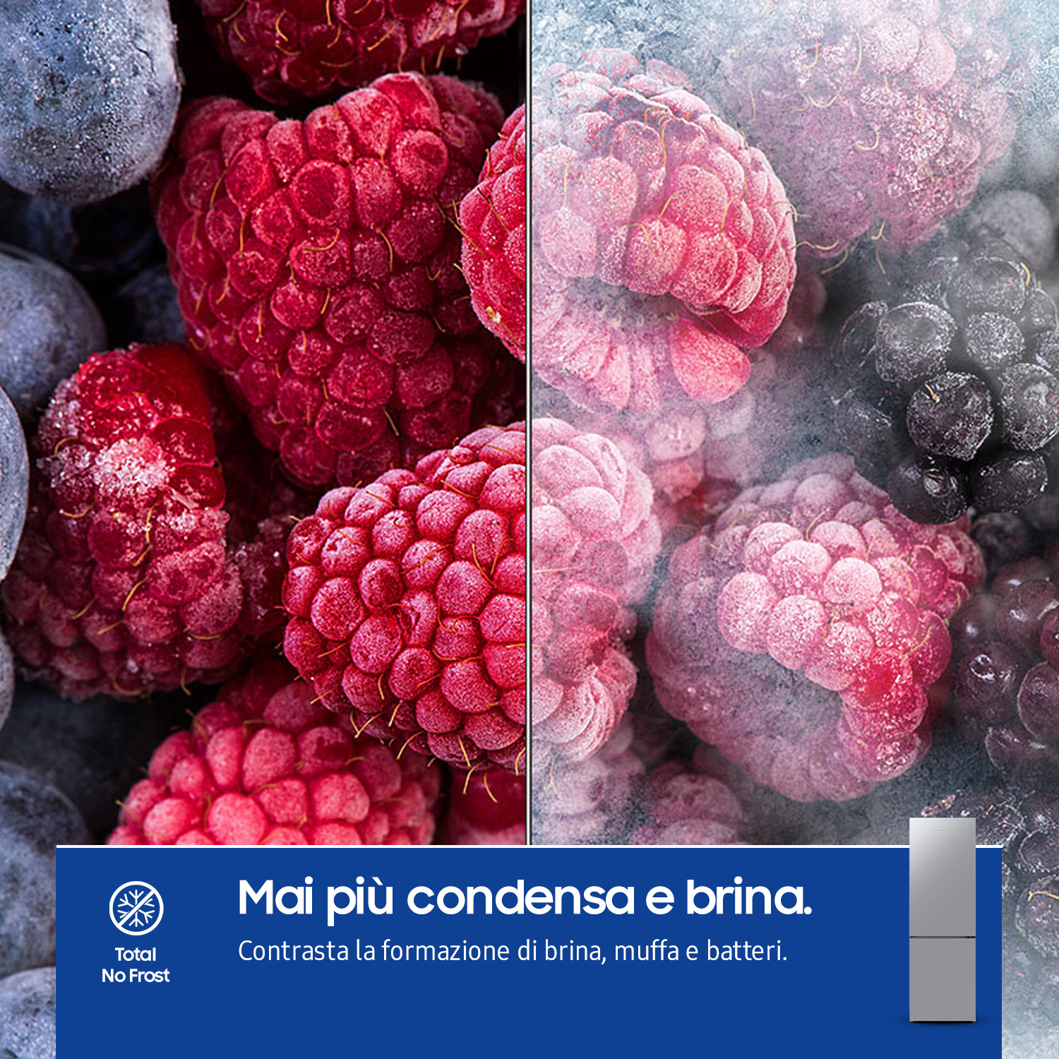 Evita di sprecare tempo ed energia per sbrinare il frigorifero. La tecnologia Total no frost ottimizza la circolazione dell'aria per mantenere una temperatura costante che impedisce la formazione di ghiaccio. Inoltre raggiunge la temperatura impostata molto più rapidamente, richiedendo meno energia al sistema di raffreddamento che dura quindi più a lungo.