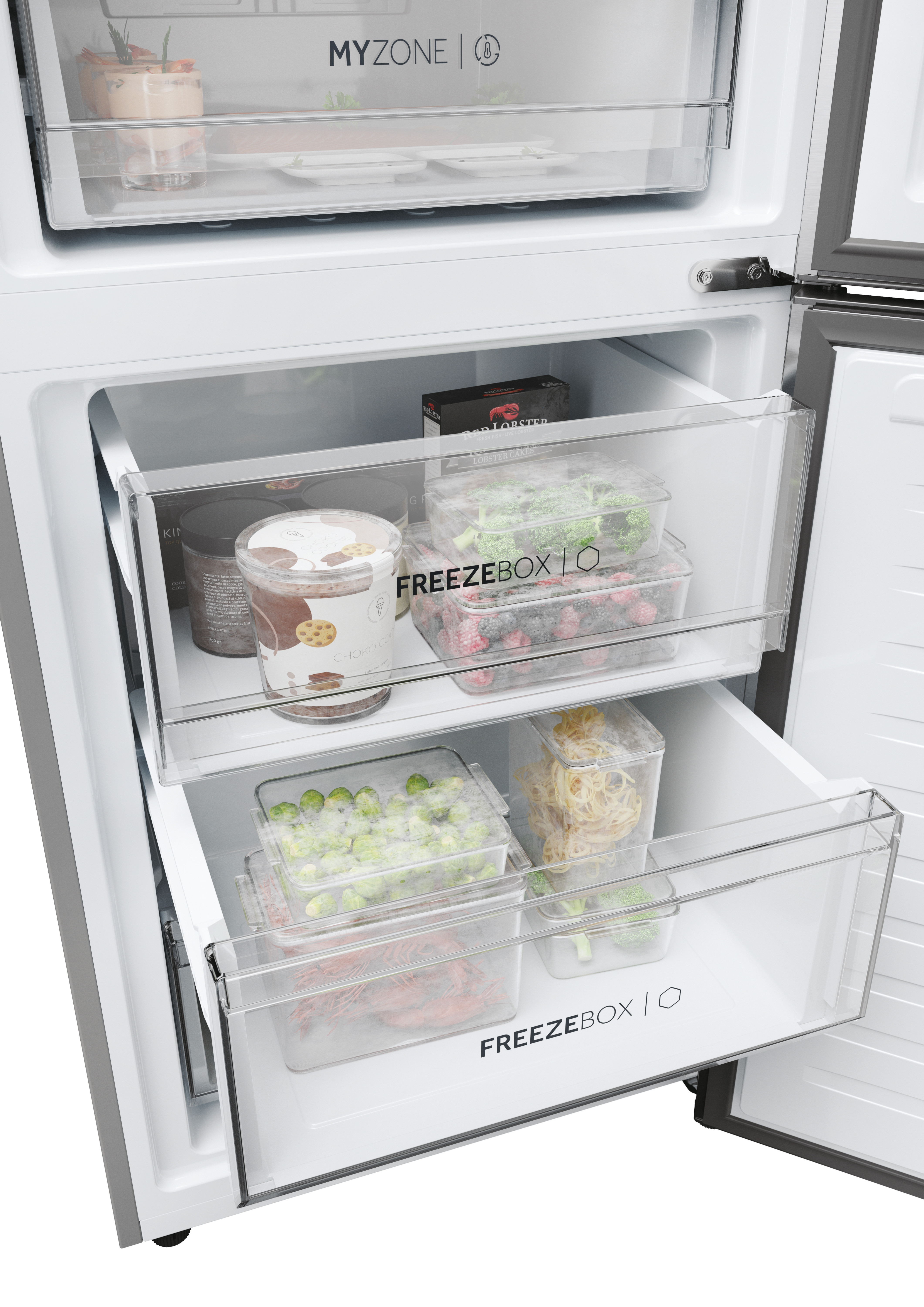 I cassetti My Zone e Humidity Zone sono 2 cassetti dedicati che garantiscono la migliore conservazione per i tuoi alimenti. MyZone ti consente di regolare la temperatura del cassetto con un semplice tocco; mentre nel cassetto Humidity Zone l'umidità è pari al 90%, per mantenere frutta e verdura fresche come il primo giorno. Tutti i tuoi alimenti sono conservati in un ambiente igienizzato grazie a T-ABT® che elimina fino al 99,99% dei batteri, mantenendo i loro sapori originali, l'igiene e preservando la tua salute.* *Solo sulla serie 2D 7