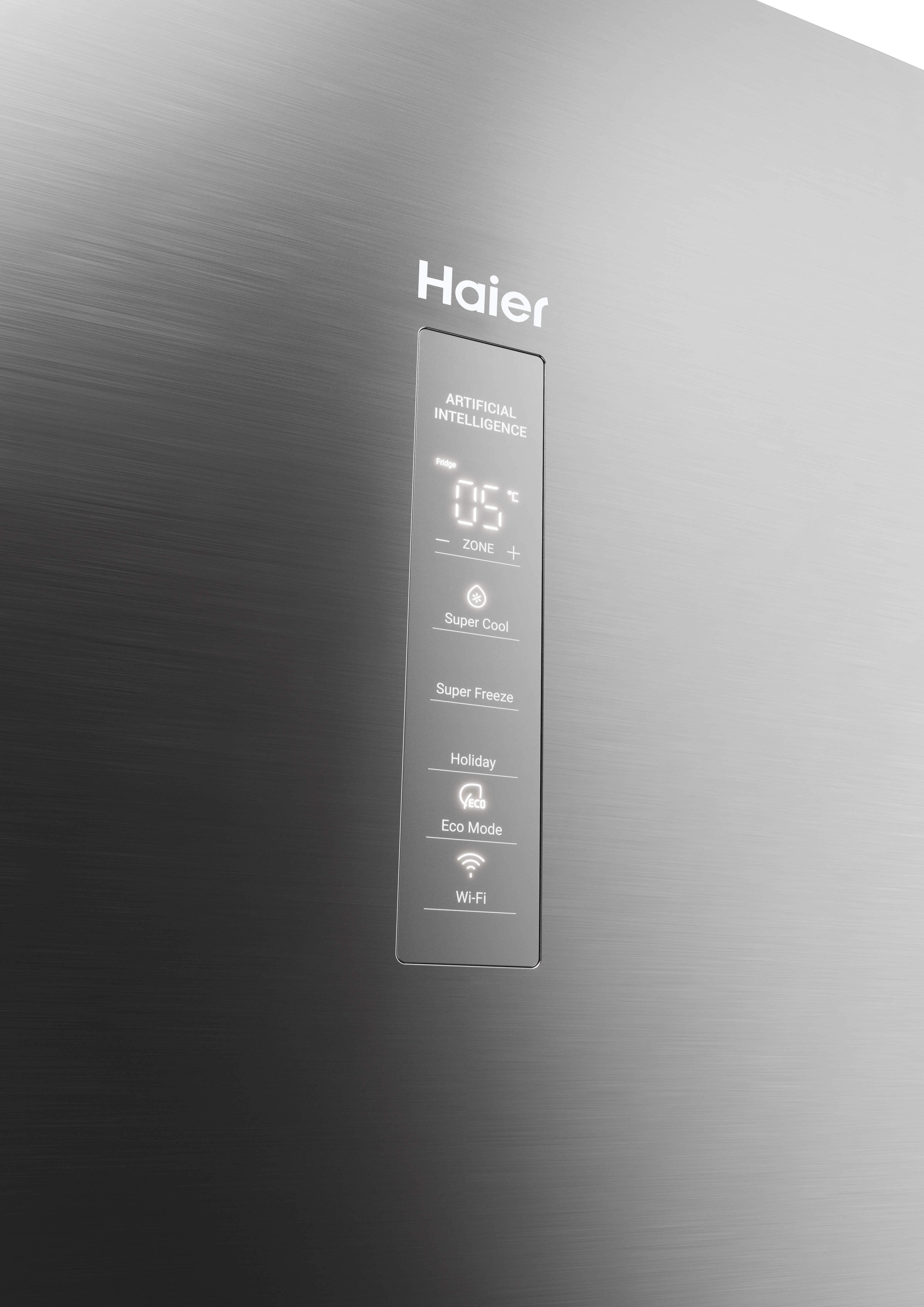 Nella parte superiore, il frigorifero ha un display dove è possibile impostare la temperatura del frigorifero (da 2°C a 8°C) e del congelatore (da -16°C a -24°C). Dal display è possibile impostare altre funzioni come holiday, eco, super cool, super freeze e connettere il proprio frigorifero al WIFI grazie alla nuova app hOn.