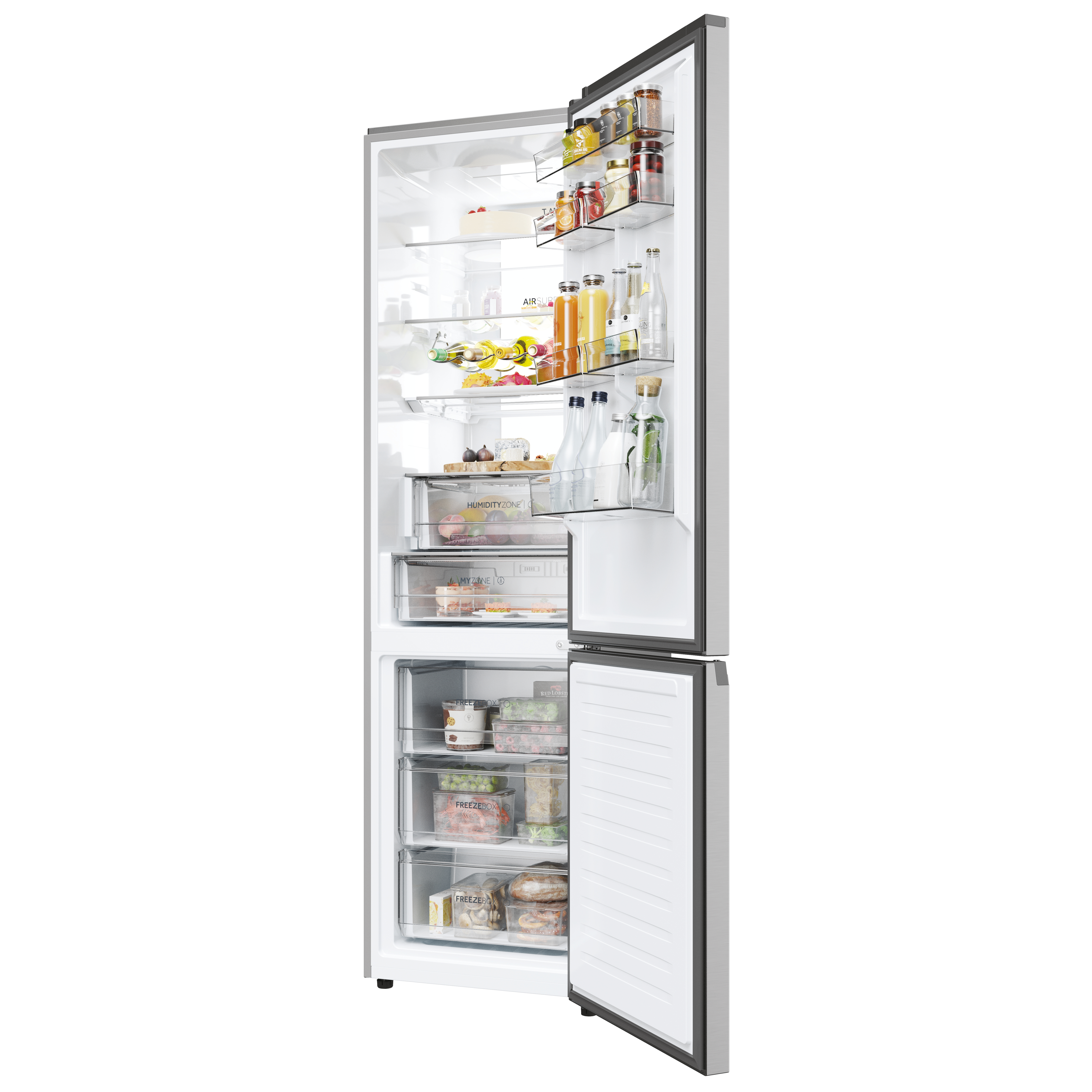 Con Haier Air Surround Fresher Tech, l'aria scorre all’interno del frigorifero in modo più omogeneo così da mantenere il gusto, la consistenza e la succosità degli alimenti fino al 99%* dopo 7 giorni come il giorno 1. Infatti, grazie alle speciali uscite laterali sulla colonna, questo sistema distribuisce l'aria fredda uniformemente così da avvolgere gli alimenti in tutta la cavità del frigorifero ed evitando il flusso diretto sugli stessi, al fine di mantenerne la consistenza. *Risultati dei test rilasciati da un laboratorio tecnico esterno indipendente confrontando un frigorifero con tecnologia Total No Frost Circle + con un frigorifero con tecnologia a flusso diretto.