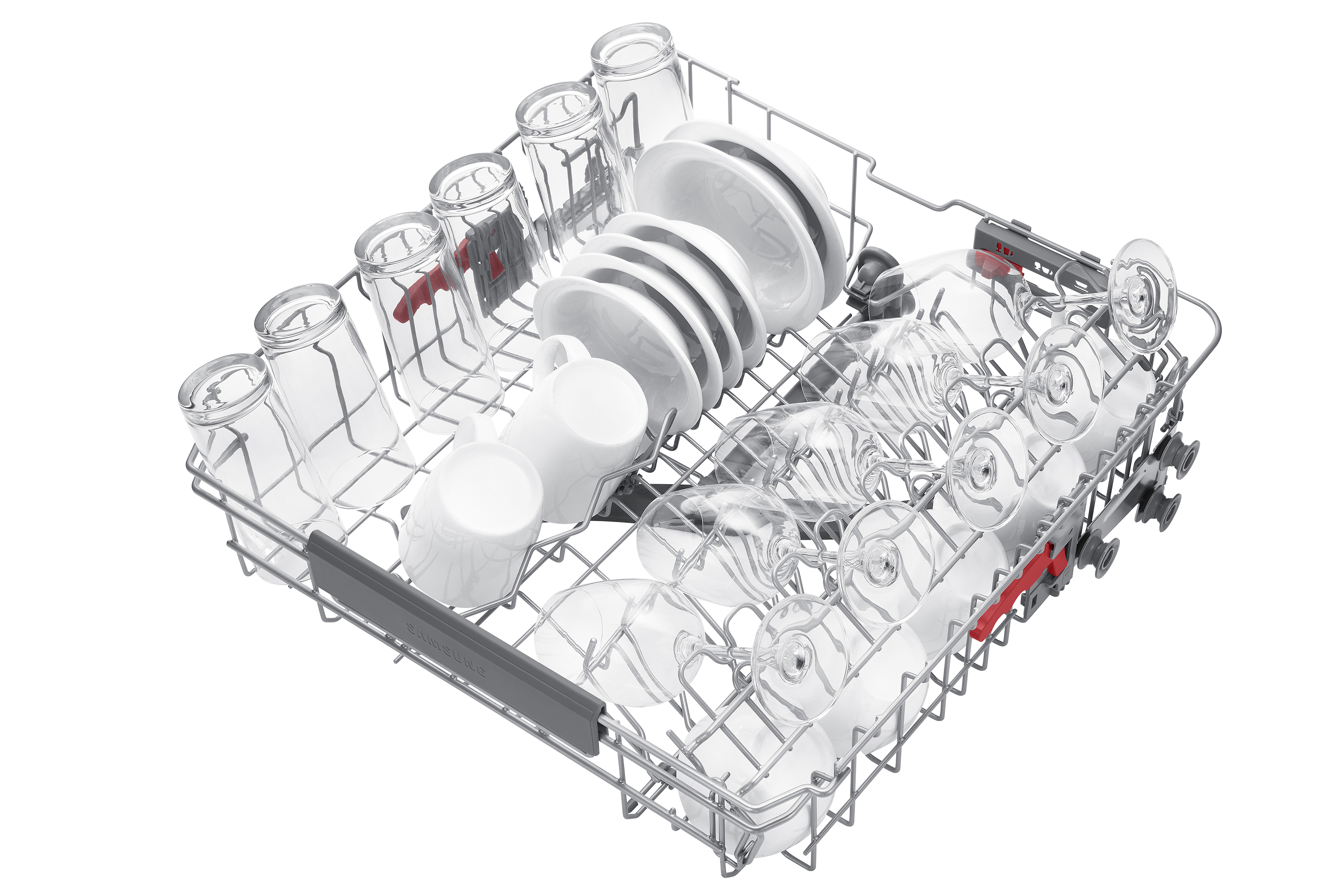 Assicurati che la lavastoviglie si integri perfettamente nellarredo della tua cucina. Il sistema[2] Kitchen Fit™ presenta una cerniera roto-traslante che consente al rivestimento della porta di scorrere verso l'alto quando lo sportello è aperto. Così, diversamente dai modelli a cerniera fissa, potrai montare questa lavastoviglie in qualunque cucina, anche in quelle con zoccolo molto basso.