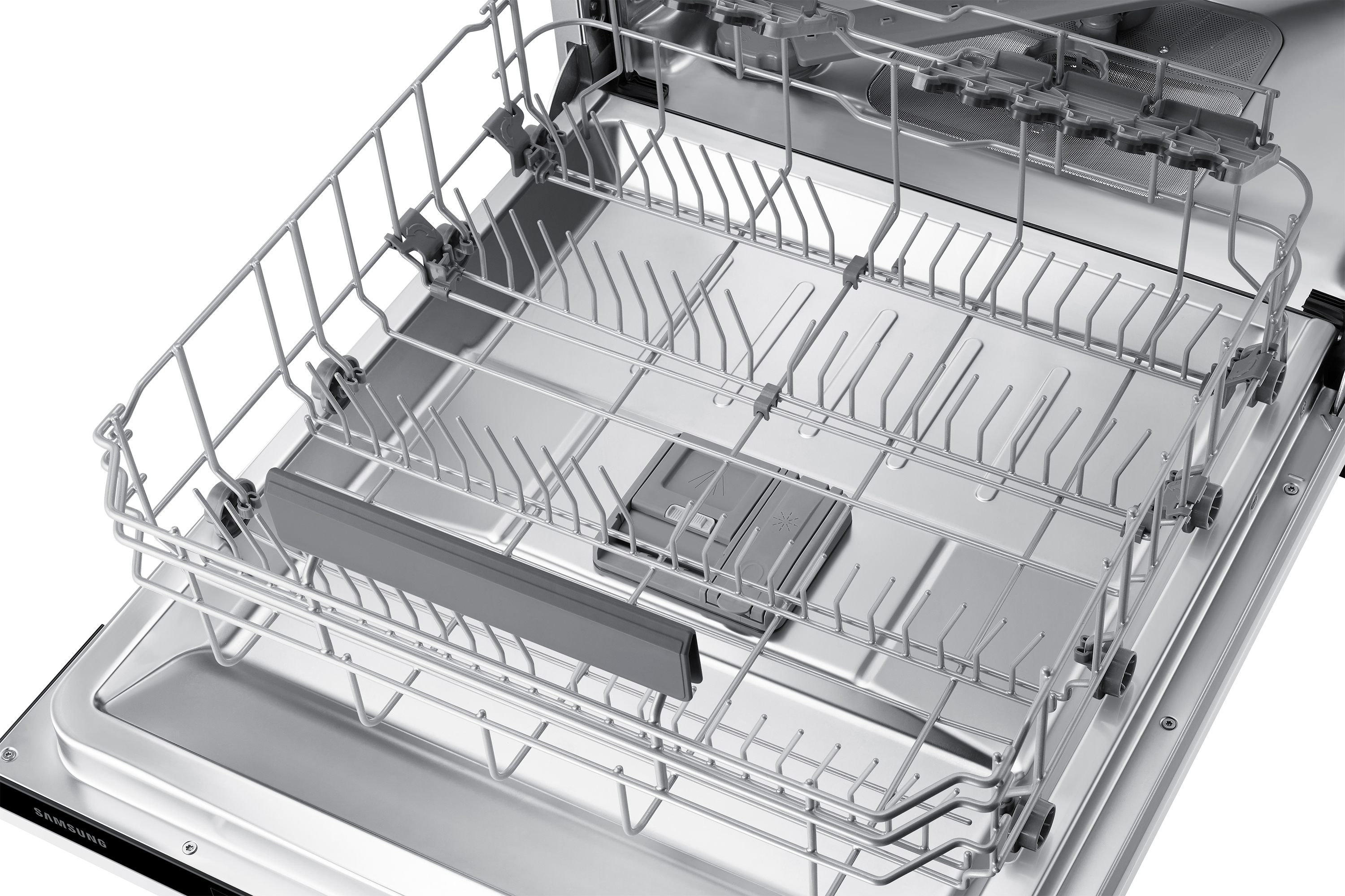 Samsung Lavastoviglie da Incasso Sliding DW60A8060IB. Posizionamento dell'apparecchio: A scomparsa totale, Dimensione: Dimensione massima (60 cm), Colore della porta: Nero. Numero di coperti: 14 coperti, Classe emissione rumore: B, Emissione acustica: 43 dB. Classe efficienza energetica: B, Consumo di acqua per ciclo: 8,5 L, Consumo energetico per 100 cicli: 64 kWh. Larghezza: 598 mm, Profondità: 550 mm, Altezza: 815 mm. Larghezza imballo: 655 mm, Profondità imballo: 645 mm, Altezza imballo: 875 mm