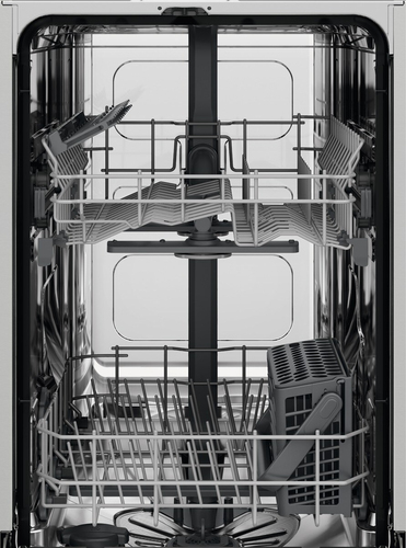 Electrolux Serie 300 EEA71210L. Posizionamento dell'apparecchio: A scomparsa totale, Dimensione: Compatta (45 cm), Colore pannello di controllo: Bianco. Numero di coperti: 9 coperti, Classe emissione rumore: C, Emissione acustica: 49 dB. Classe efficienza energetica: F, Consumo di acqua per ciclo: 9,9 L, Consumo energetico per 100 cicli: 78 kWh. Larghezza: 446 mm, Profondità: 550 mm, Altezza: 818 mm. Larghezza imballo: 490 mm, Profondità imballo: 685 mm, Altezza imballo: 870 mm