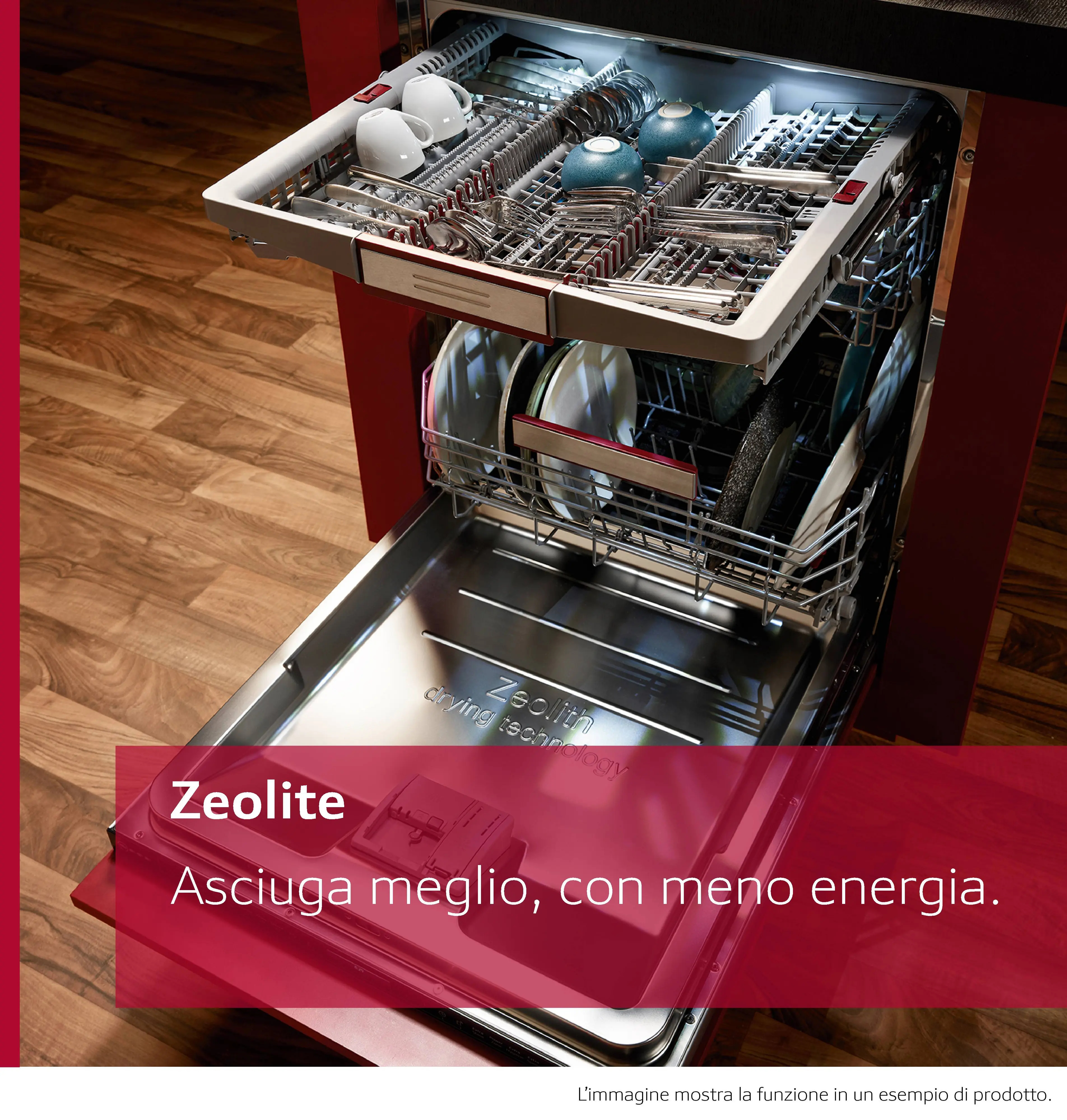 L'apposito scompartimento Zeolite della lavastoviglie contiene minerali naturali. Durante la fase di asciugatura, assorbono l'umidità e rilasciano calore. Asciuga in modo efficace oggetti di tutte le forme e dimensioni, anche quelli in plastica, facendoli brillare e consumando meno energia. La ricarica durante il ciclo di lavaggio successivo assicura una tecnologia ad alte prestazioni di lunga durata e priva di manutenzione.