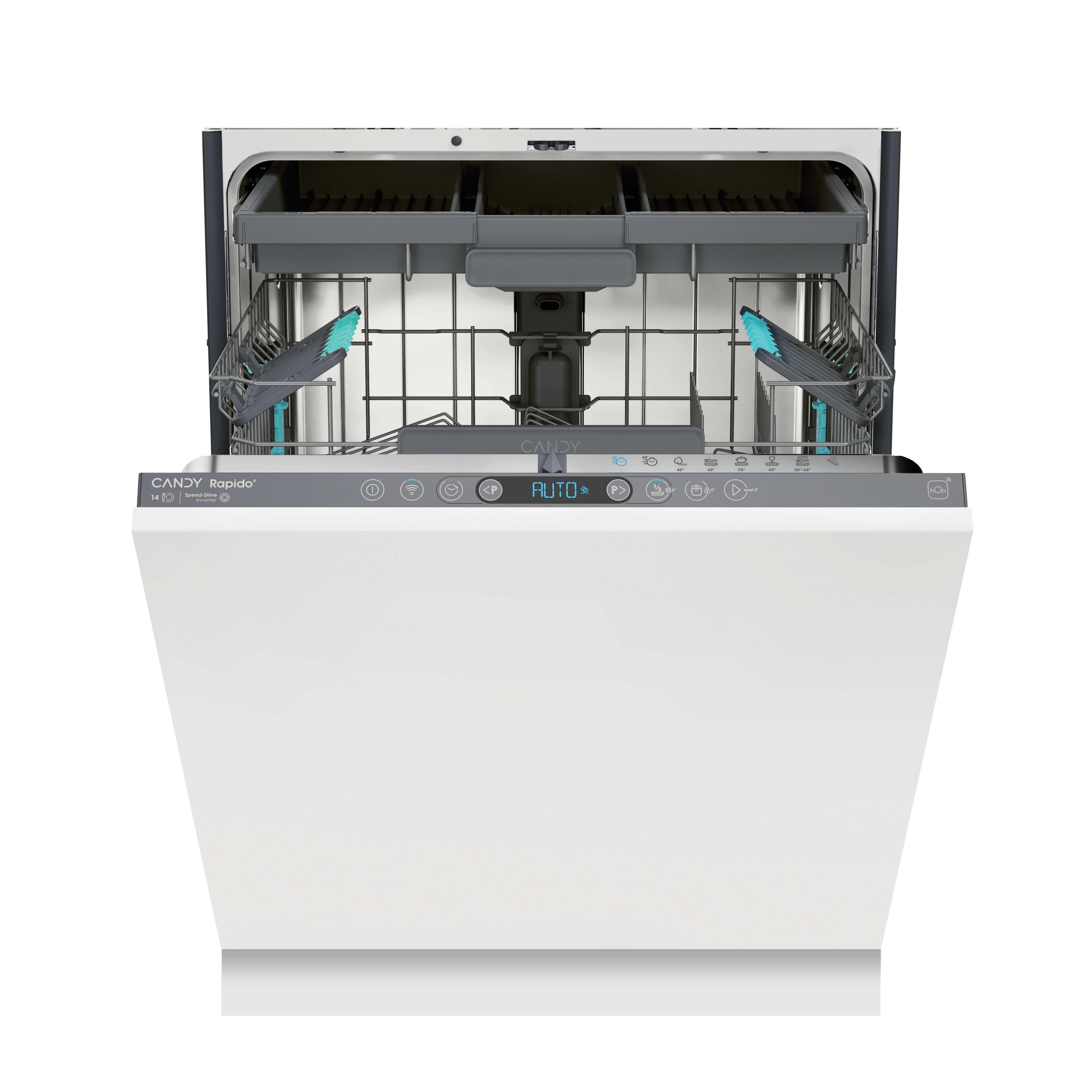 Candy RapidÓ CI 4B4F1A. Posizionamento dell'apparecchio: A scomparsa totale, Dimensione: Dimensione massima (60 cm), Numero di cestini: 2 cestello/i. Numero di coperti: 14 coperti, Classe emissione rumore: B, Emissione acustica: 44 dB. Applicazioni per il controllo supportate: hOn. Classe efficienza energetica: B, Consumo di acqua per ciclo: 9,5 L, Consumo energetico per 100 cicli: 64 kWh. Larghezza: 600 mm, Profondità: 550 mm, Altezza: 820 mm