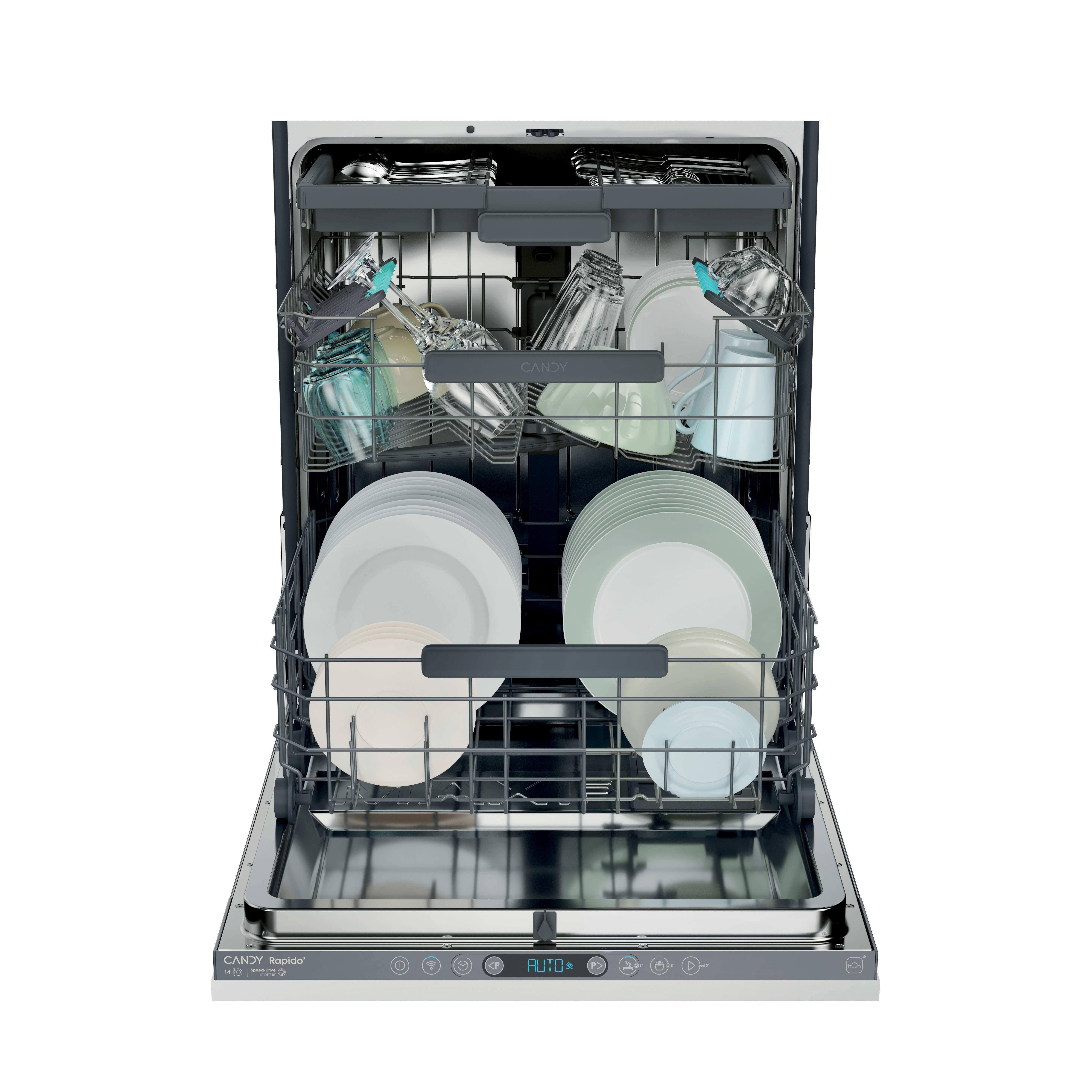 Candy Rapido' è la lavastoviglie più veloce e spaziosa del mercato. È dotata di un'ampia gamma di cicli rapidi adatti a ogni esigenza, che semplificano l'utilizzo quotidiano anche grazie alla MAXI-TUB: la vasca più spaziosa in dimensioni standard per caricare le stoviglie più grandi.