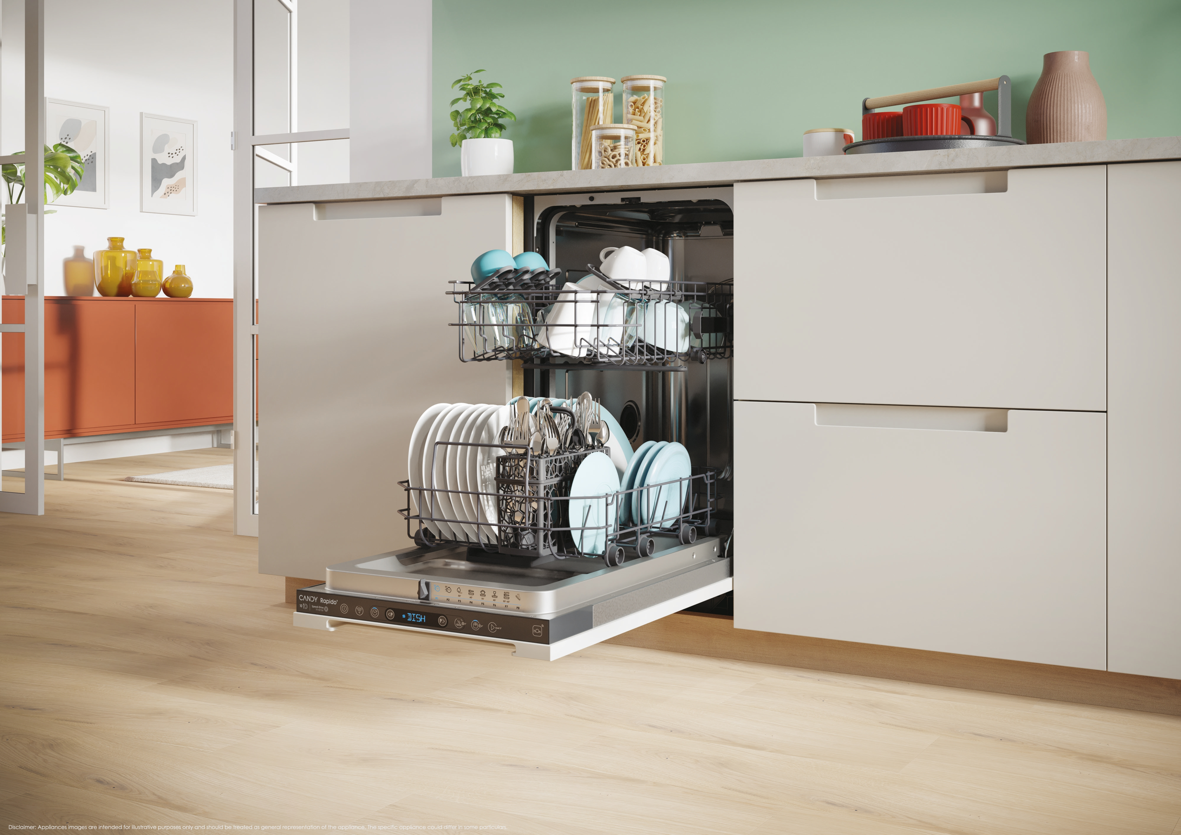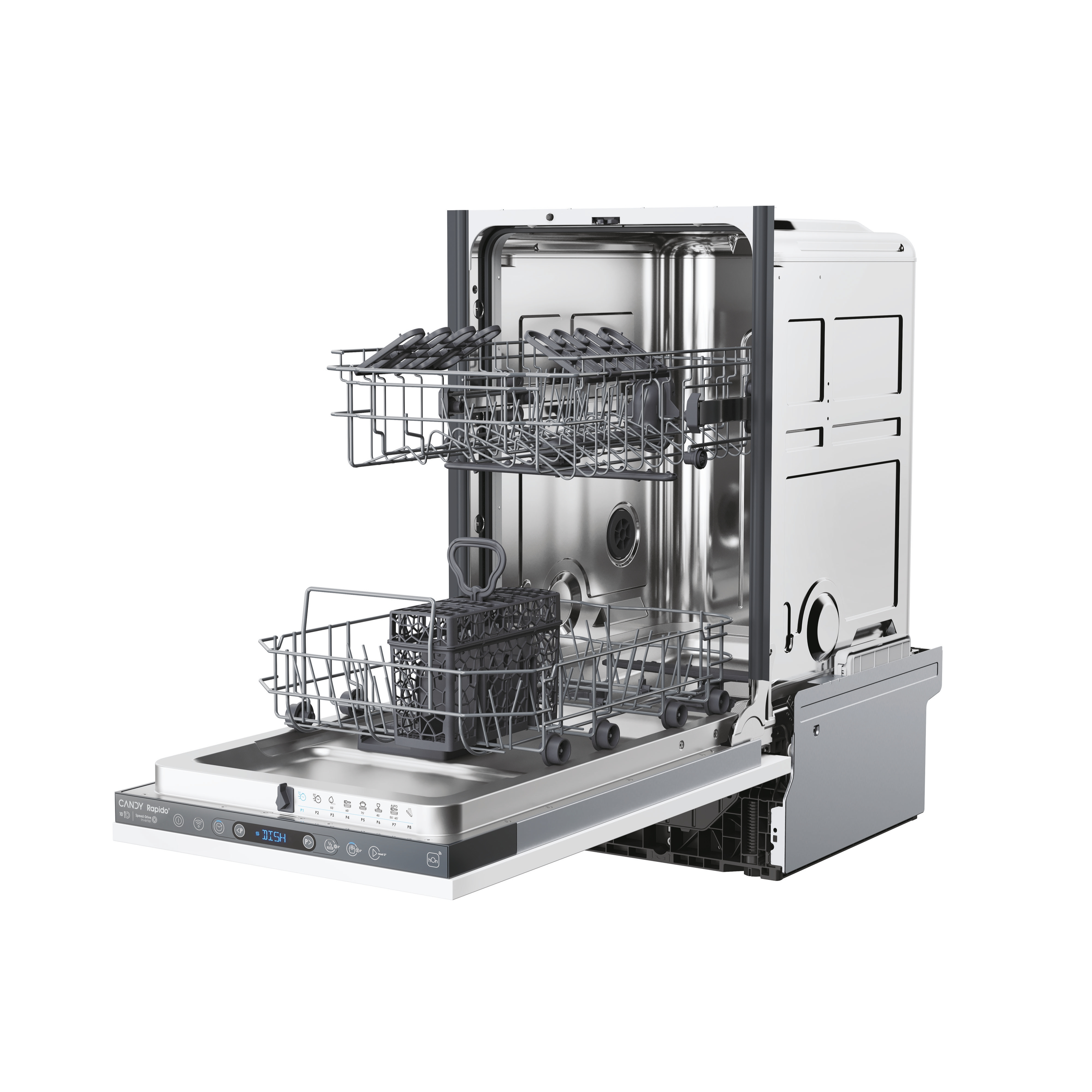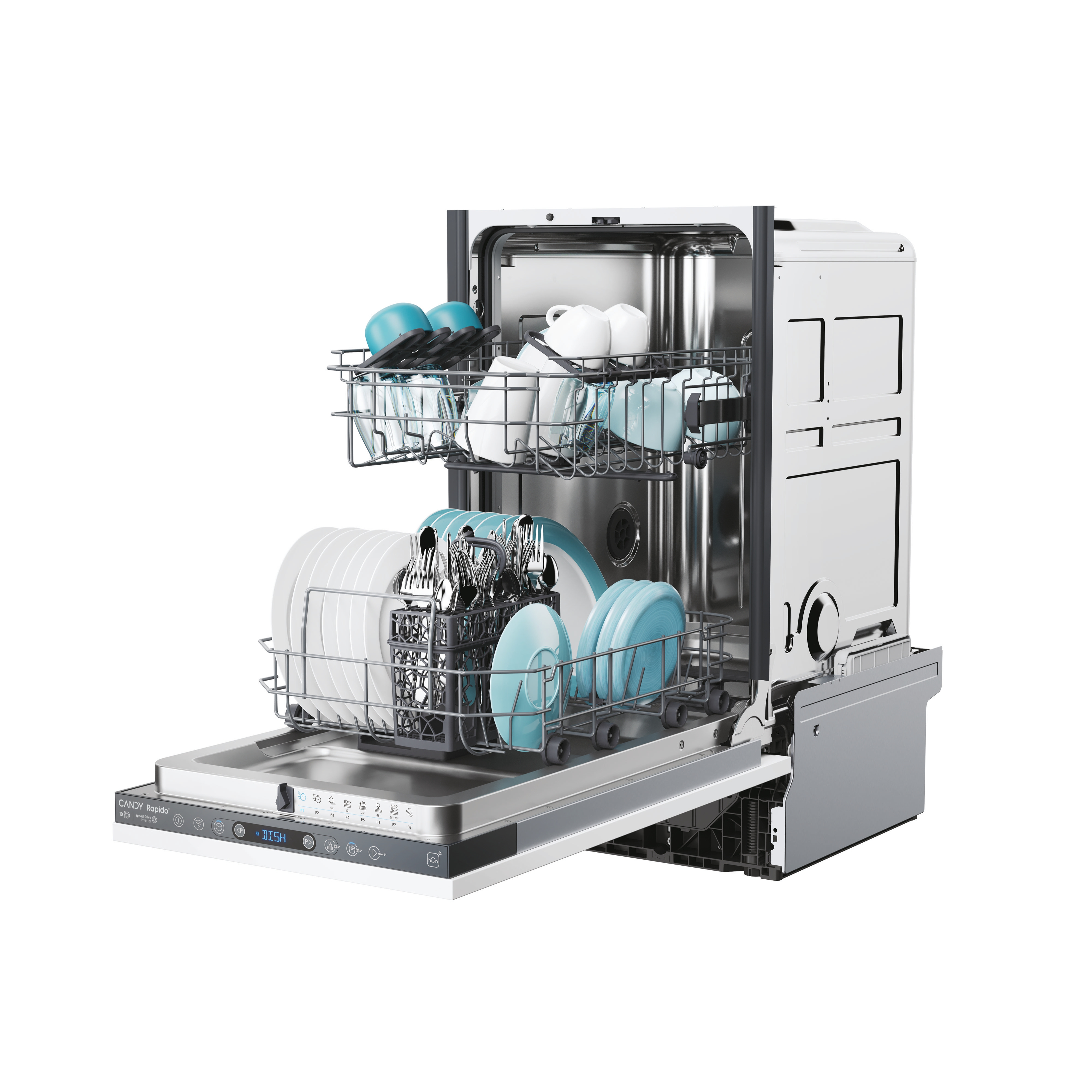 Candy RapidÓ CI0C7SB0FA. Posizionamento dell'apparecchio: A scomparsa totale, Dimensione: Compatta (45 cm), Colore pannello di controllo: Nero. Numero di coperti: 10 coperti, Classe emissione rumore: C, Emissione acustica: 47 dB. Applicazioni per il controllo supportate: hOn. Classe efficienza energetica: C, Consumo di acqua per ciclo: 9 L, Consumo energetico per 100 cicli: 59 kWh. Larghezza: 448 mm, Profondità: 559 mm, Altezza: 816 mm