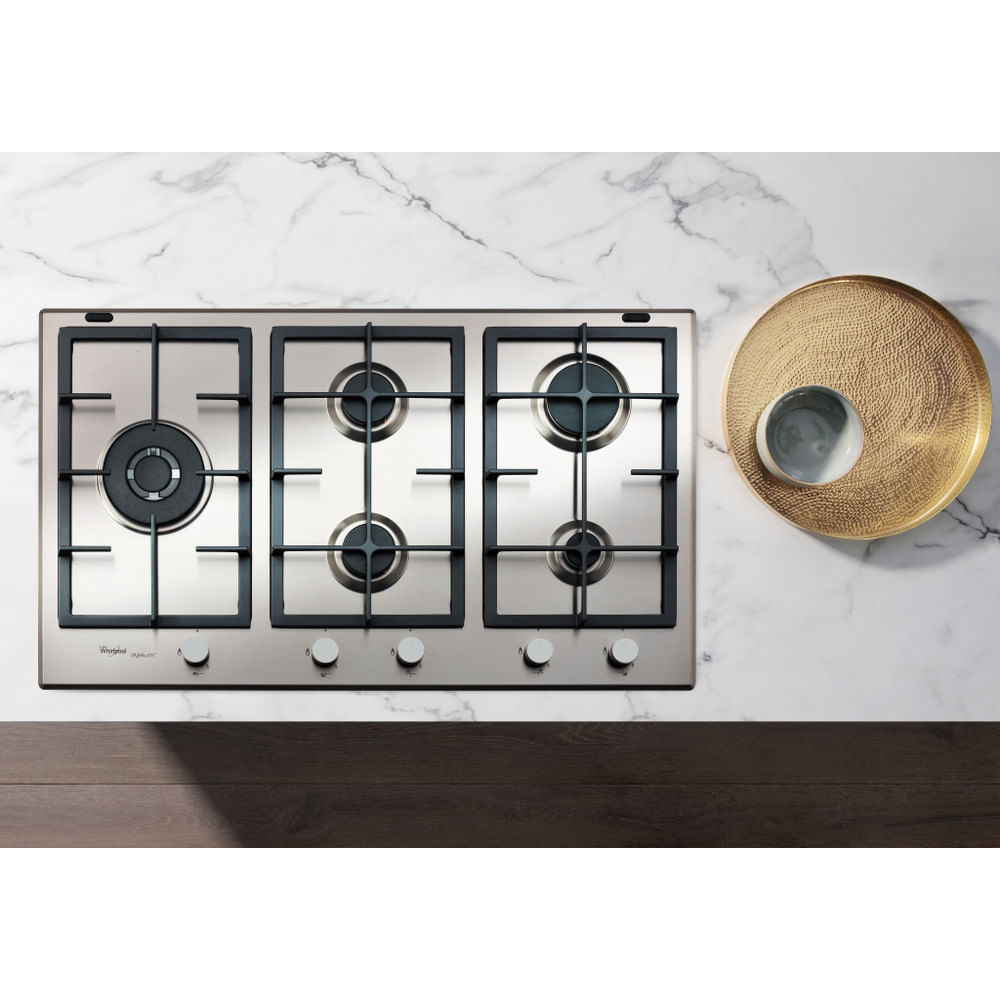 Questo piano cottura Whirlpool è dotato di 5 bruciatori per un controllo istantaneo e accurato della temperatura.