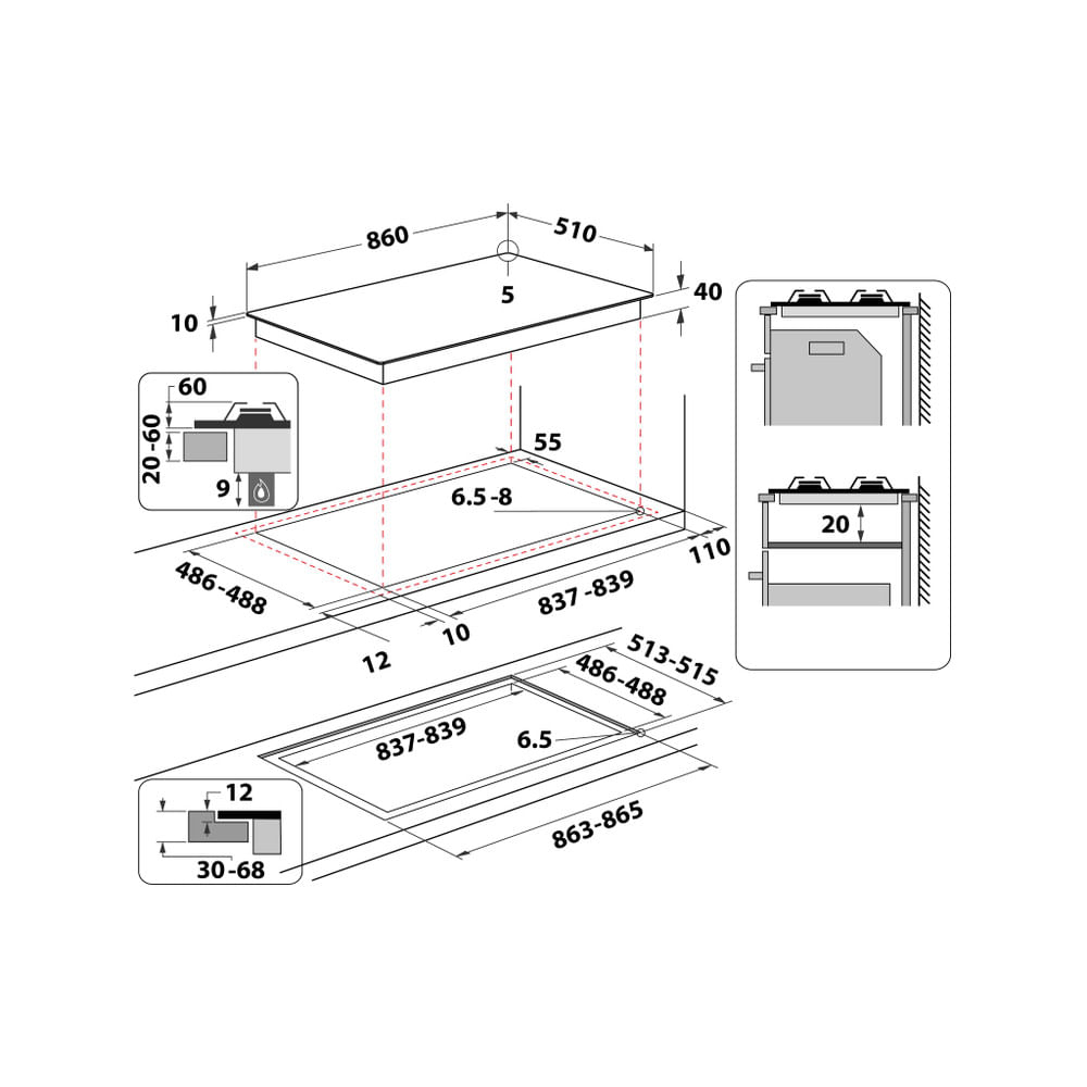 | Dimensione della larghezza del piano cottura | 86 cm |