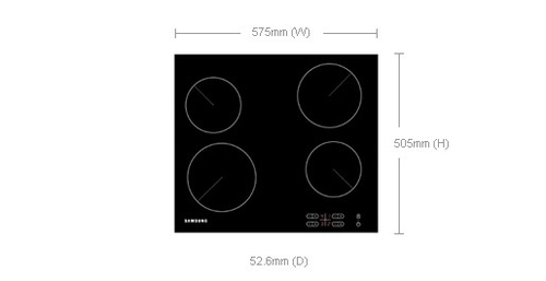 Samsung C61R2AEE. Colore del prodotto: Nero, Posizionamento dell'apparecchio: Da incasso, Tipo di piano cottura: Piano cottura a induzione. Bruciatore medio: 1200 W, Bruciatore grande: 1800 W. Tipo di controllo: Touch, Tipo di display: LED. Larghezza: 575 mm, Profondità: 505 mm, Altezza: 52,6 mm. Larghezza imballo: 692 mm, Profondità imballo: 130 mm, Altezza imballo: 622 mm