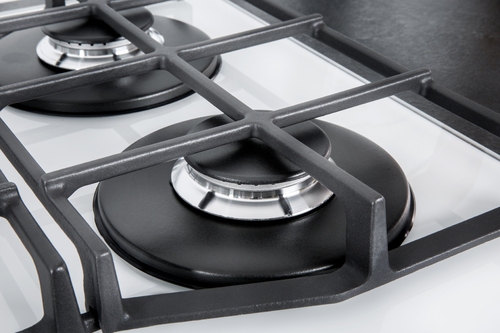 PIANO COTTURA IN CRISTALLO DA 75 CM - 5 fuochi gas di cui 1 doppia corona - Accensione elettronica sottomanopola - Valvola di sicurezza gas - 3 griglie in ghisa - Possibilità di inserimento nel vano dei piani da 60 cm