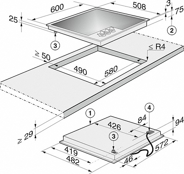 | Alimentazione del fornello/zona cottura 3 | 1000 W |