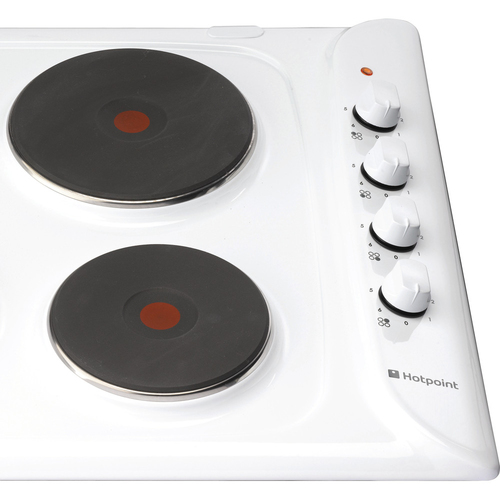 Hotpoint E6041W. Colore del prodotto: Bianco, Posizionamento dell'apparecchio: Da incasso, Dimensione della larghezza del piano cottura: 58 cm. Tipo di controllo: Manopola, Posizione di controllo: In alto a destra. Tensione di ingresso AC: 240 V, Frequenza di ingresso AC: 50 - 60 Hz, Corrente: 34,3 A. Larghezza: 580 mm, Profondità: 510 mm, Altezza: 33 mm