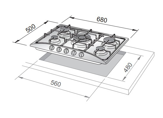 | Dimensione della larghezza del piano cottura | 68 cm |