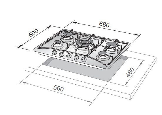 | Dimensione della larghezza del piano cottura | 68 cm |