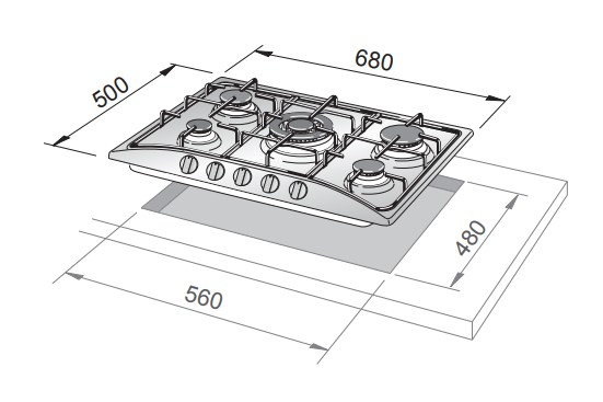 | Dimensione della larghezza del piano cottura | 68 cm |