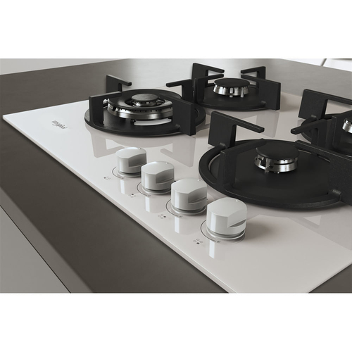 Whirlpool AKT 625/WH. Colore del prodotto: Nero, Bianco, Posizionamento dell'apparecchio: Da incasso, Dimensione della larghezza del piano cottura: 60 cm. Tipo di controllo: Manopola, Posizione di controllo: In alto a destra. Potenza aggregata (gas): 7800 W, Tensione di ingresso AC: 220 - 240 V, Frequenza di ingresso AC: 50 - 60 Hz. Larghezza: 590 mm, Profondità: 510 mm, Altezza: 49 mm