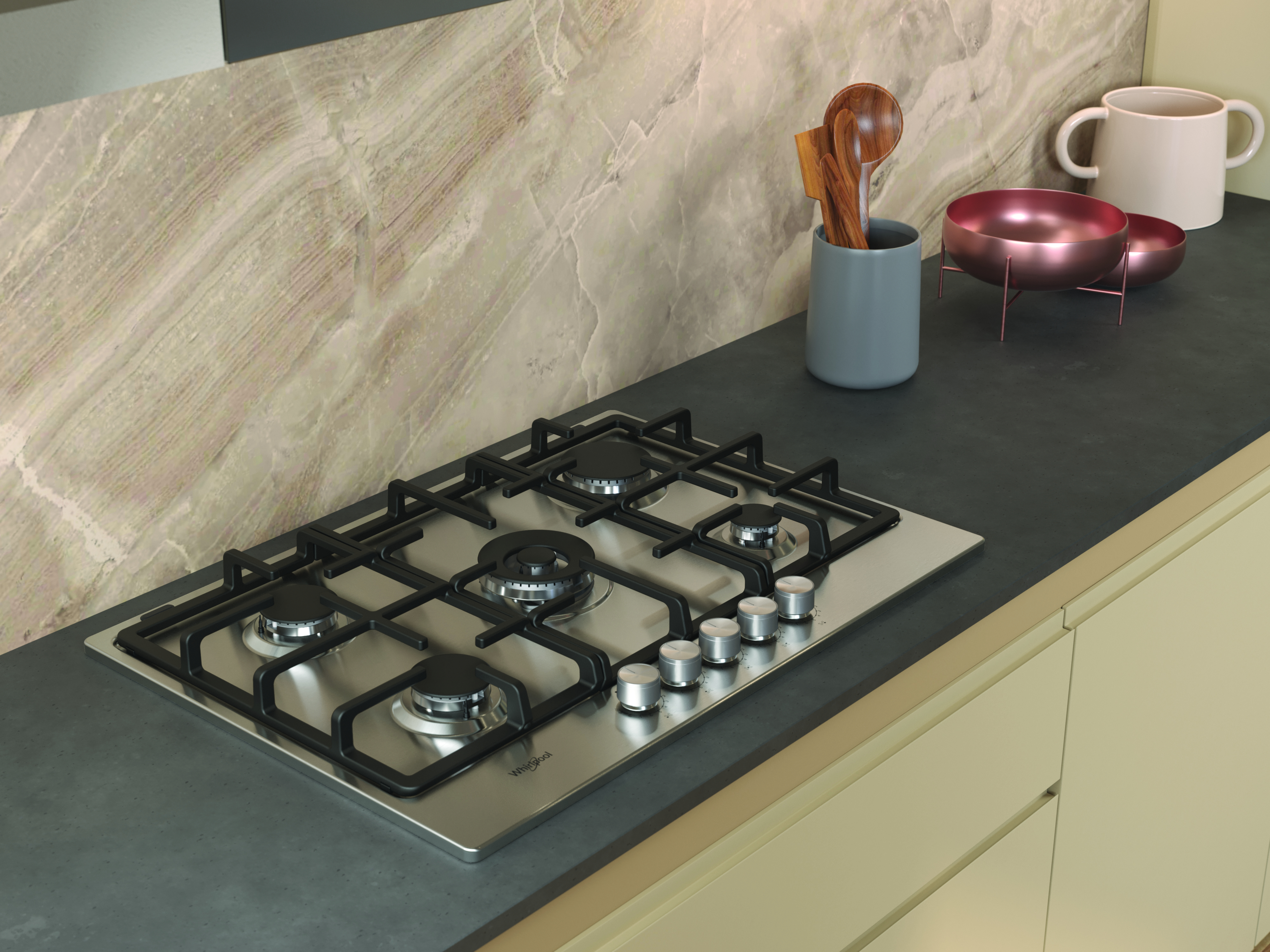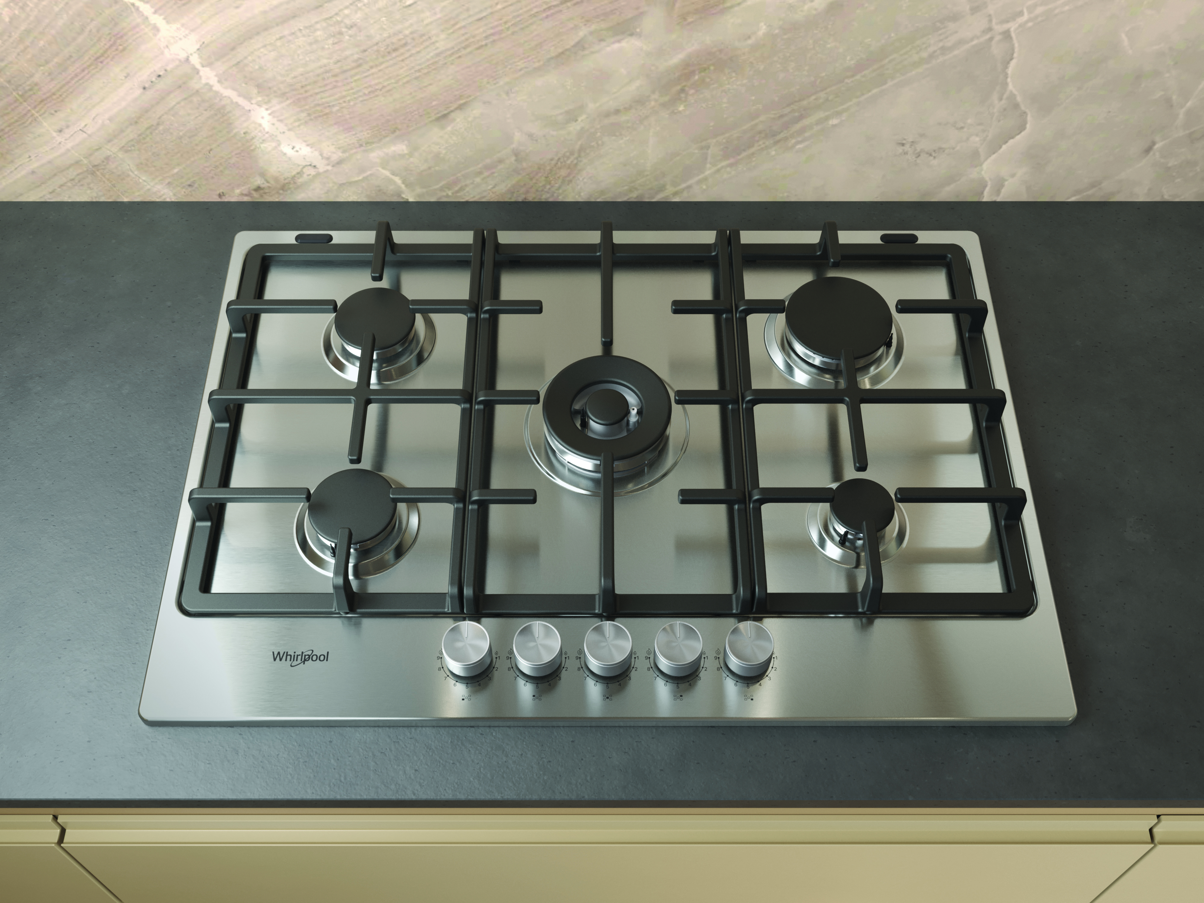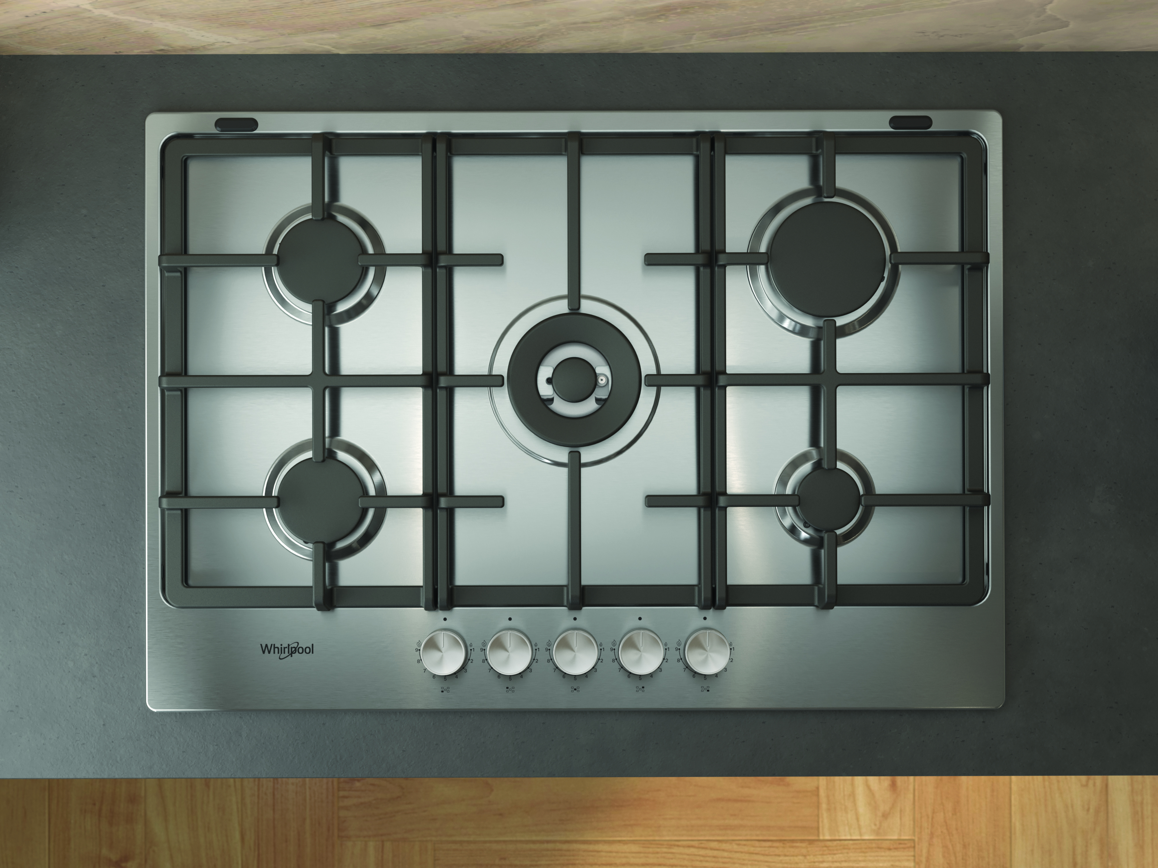 Whirlpool TKRL 761 IX K Acciaio inox Da incasso 75 cm Gas 5 Fornello(i)