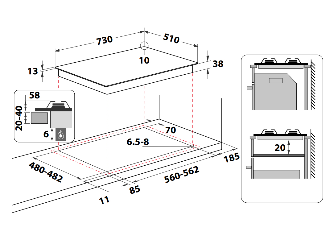 | Dimensione della larghezza del piano cottura | 75 cm |