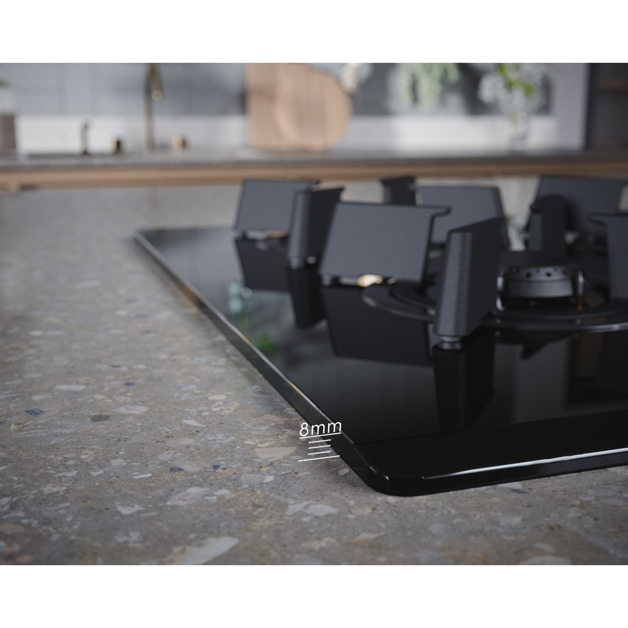 Electrolux KGG643753K Piano cottura Serie 800 Flamelight 60cm. Colore del prodotto: Nero, Posizionamento dell'apparecchio: Da incasso, Dimensione della larghezza del piano cottura: 60 cm. Tipo di controllo: Manopola, Touch, Posizione di controllo: Parte anteriore destra, Tipo di display: LED. Potenza aggregata (gas): 8500 W, Tensione di ingresso AC: 220-240 V, Frequenza di ingresso AC: 50-60 Hz. Larghezza: 590 mm, Profondità: 520 mm, Peso: 13,7 kg. Larghezza imballo: 719 mm, Profondità imballo: 626 mm, Altezza imballo: 155 mm