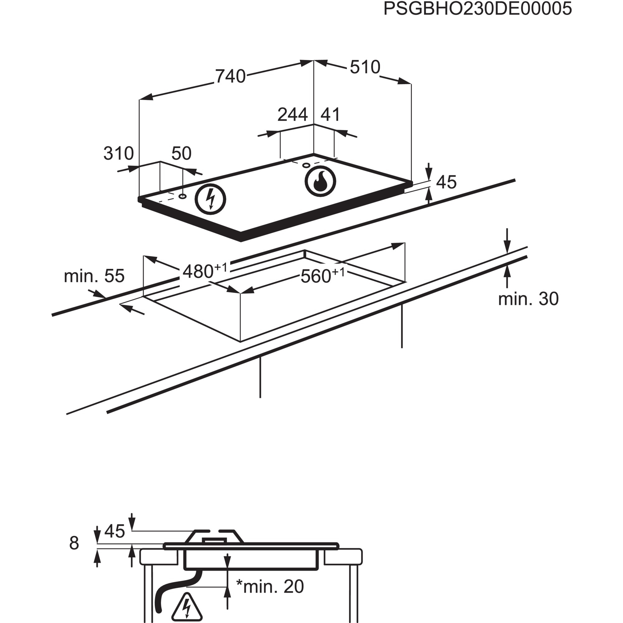 | Dimensione della larghezza del piano cottura | 75 cm |