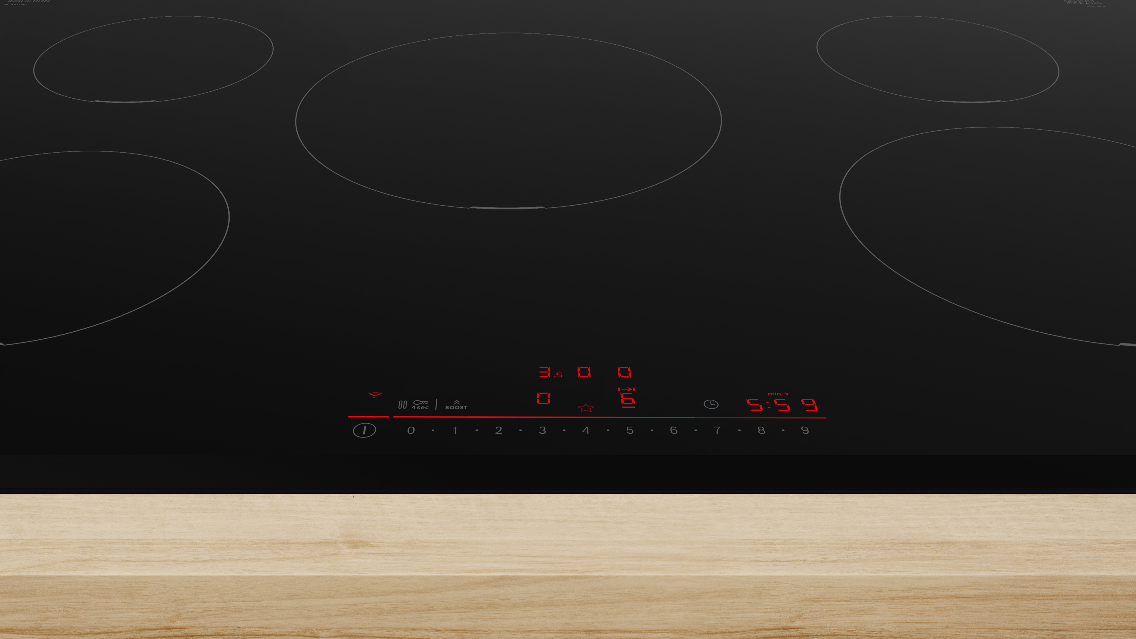 Bosch Serie 6 PIV831HB1E Piano cottura a induzione 80 cm 5 zone standard Nero. Colore del prodotto: Nero, Posizionamento dell'apparecchio: Da incasso, Dimensione della larghezza del piano cottura: 80 cm. Tipo di controllo: Touch, Posizione di controllo: Frontale, Tipo di timer: Digitale. Potenza aggregata (elettrica): 7400 W, Tensione di ingresso AC: 220 - 240 V, Frequenza di ingresso AC: 50 - 60 Hz. Applicazioni per il controllo supportate: Home Connect. Larghezza: 802 mm, Profondità: 522 mm, Altezza: 51 mm