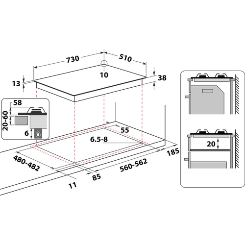 | Dimensione della larghezza del piano cottura | 75 cm |