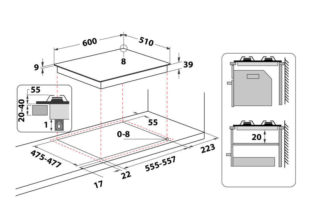| Dimensione della larghezza del piano cottura | 60 cm |