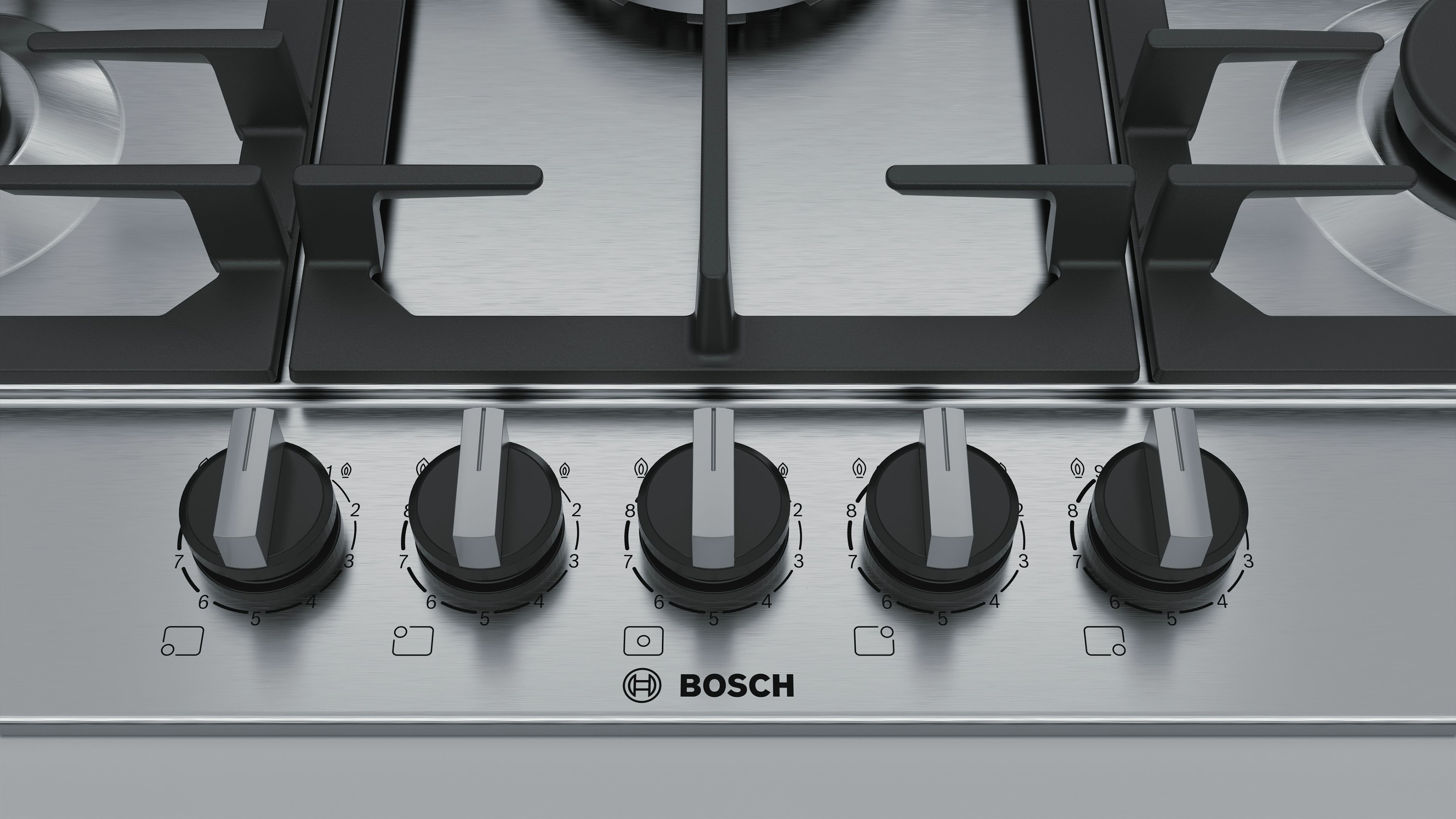 Bosch Serie 6 PCQ7A5B90 Piano cottura a gas 75 cm Acciaio inox