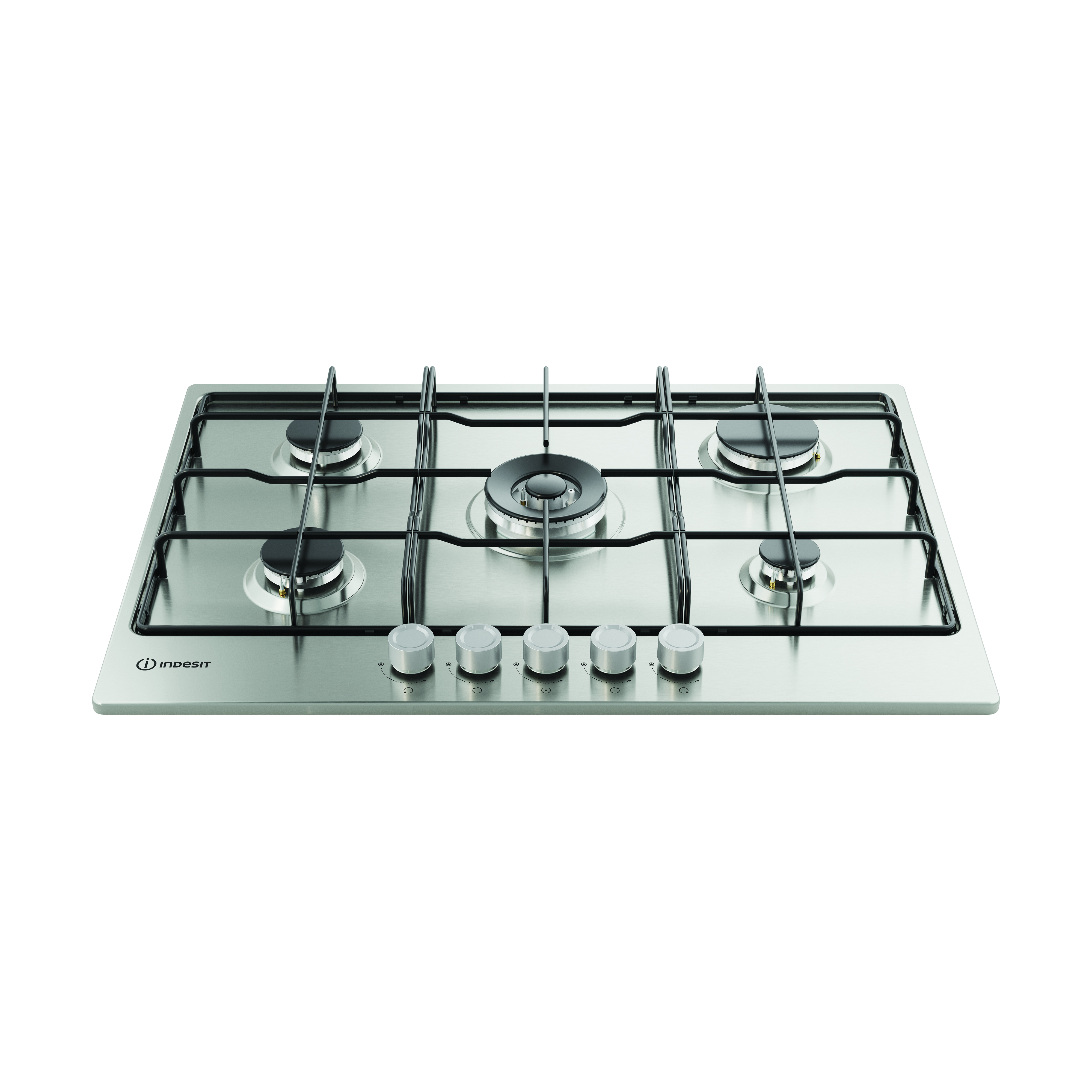 Indesit THP 752 W/IX/I 1 piano gas inox 75cm 5 fuochi bruciatore doppia corona griglie smaltate