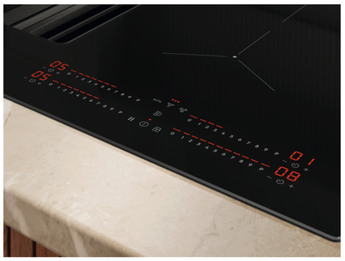 Piano a induzione con cappa integrata - Modello filtrante - 80cm con foro installazione 68cm - 4 zone - Bridge a sinistra - Flexy Power Management - Portata massima aspirante 650 m3/h - Completo di filtri carbone - Indicatore luminoso saturazione filtri - Funzione Stop&Go - Sicurezza bambini (blocco accensione) - Spie di calore residuo - Spegnimento automatico di sicurezza - Comandi Slider - H2H - Classe A+ - Estetica nera - Prodotto installabile in versione aspirante - installabile on top o a filo