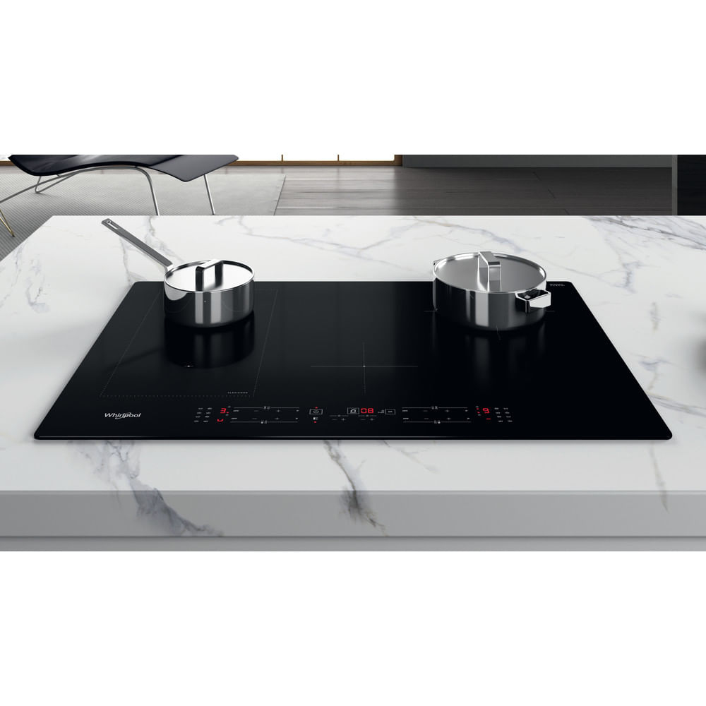 Whirlpool Piano Cottura Induzione WL B2977 NE. Colore del prodotto: Nero, Posizionamento dell'apparecchio: Da incasso, Dimensione della larghezza del piano cottura: 77 cm. Tipo di controllo: Touch, Posizione di controllo: Frontale, Tipo di timer: Digitale. Potenza aggregata (elettrica): 7200 W, Tensione di ingresso AC: 220 - 240 V, Frequenza di ingresso AC: 50 - 60 Hz. Larghezza: 770 mm, Profondità: 510 mm, Altezza: 54 mm. Larghezza imballo: 600 mm, Profondità imballo: 120 mm, Altezza imballo: 850 mm