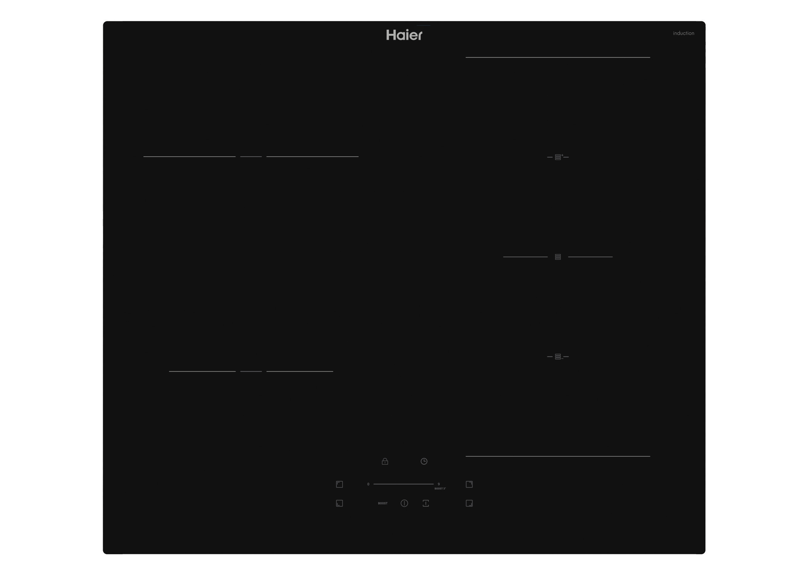 Haier HAI64SCM, Nero, Da incasso, 59 cm, Piano cottura a induzione, Vetro-ceramica, 4 Fornello(i)