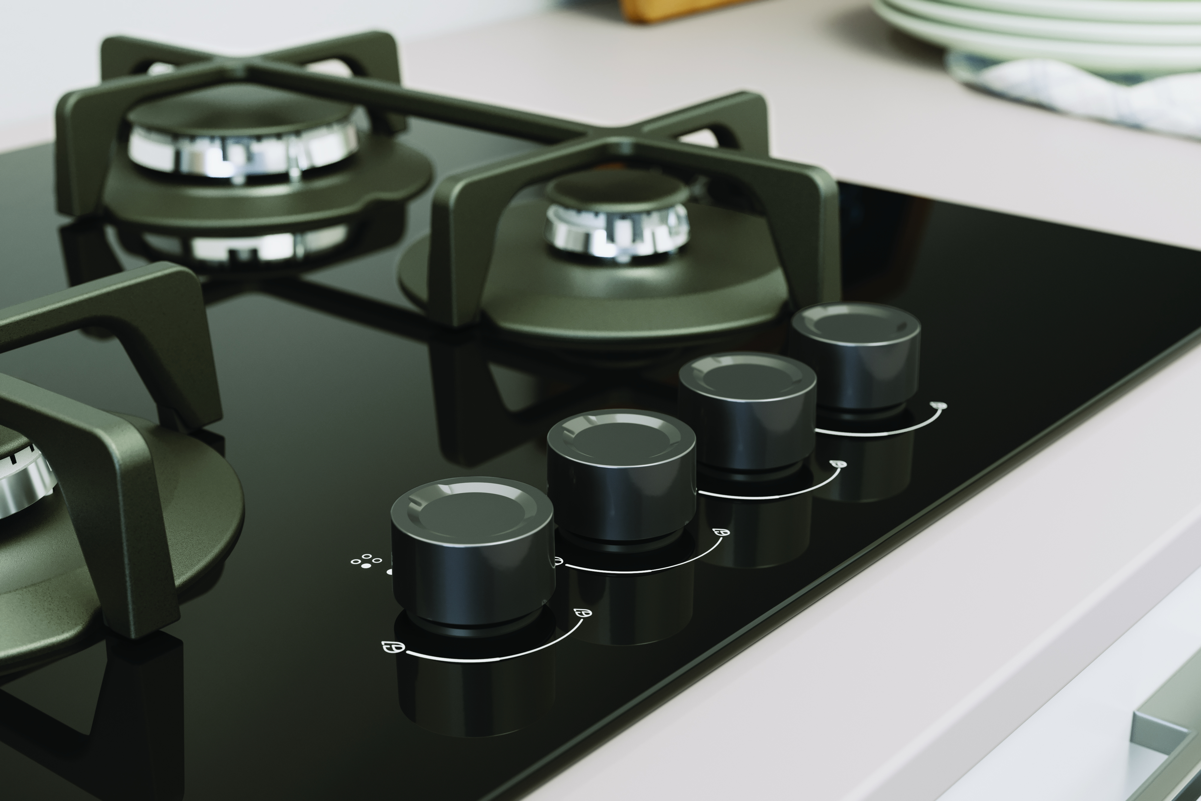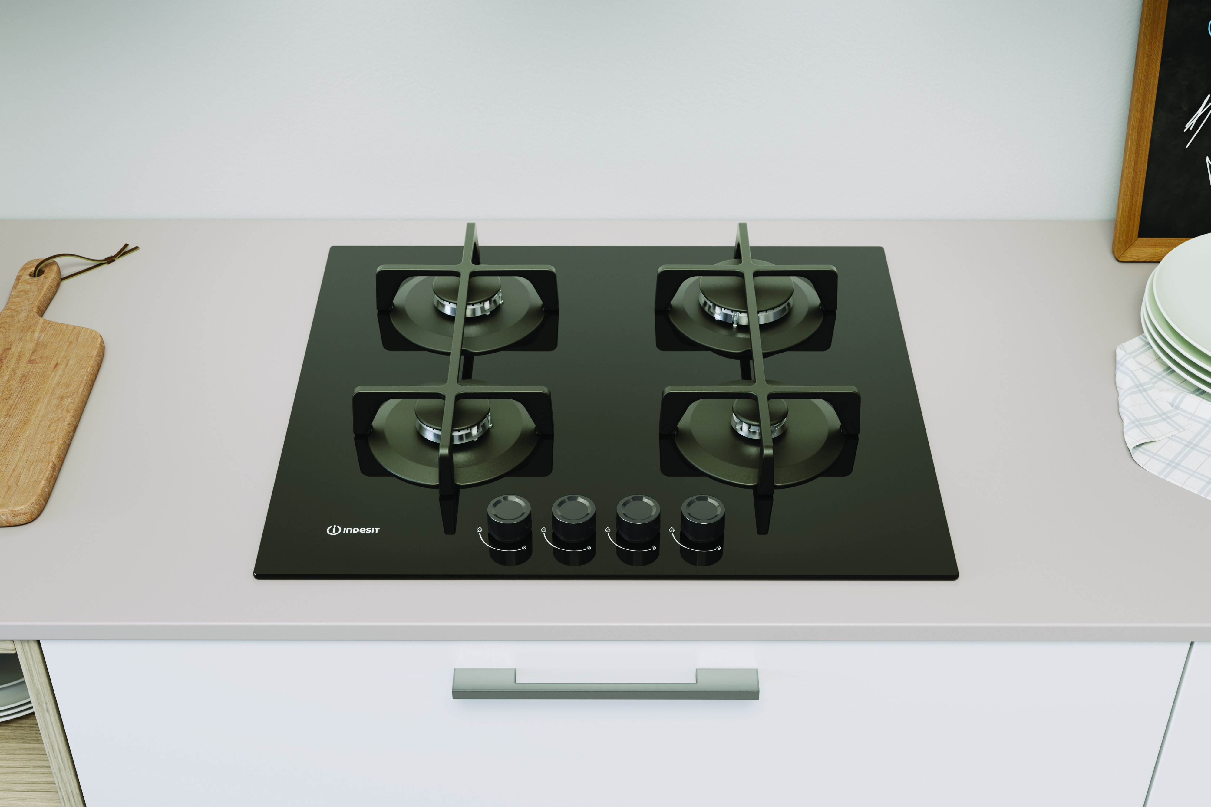 Indesit ING 61T/BK 1 piano gas vetro nero 60cm 4 fuochi griglie in ghisa lavabili in lavastoviglie