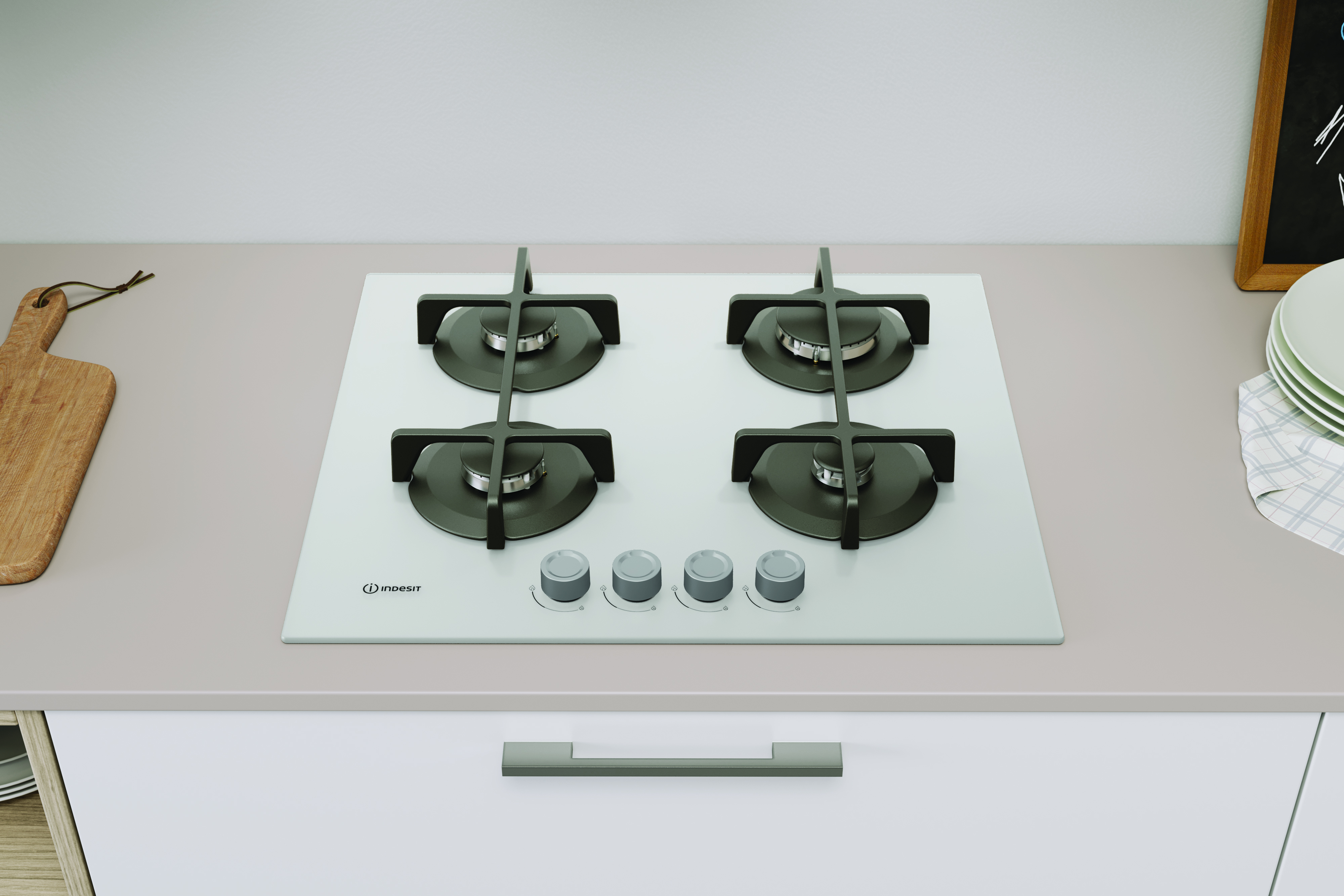 Indesit ING 61T/WH 1 piano gas vetro tortora 60cm 4 fuochi griglie in ghisa lavabili in lavastoviglie