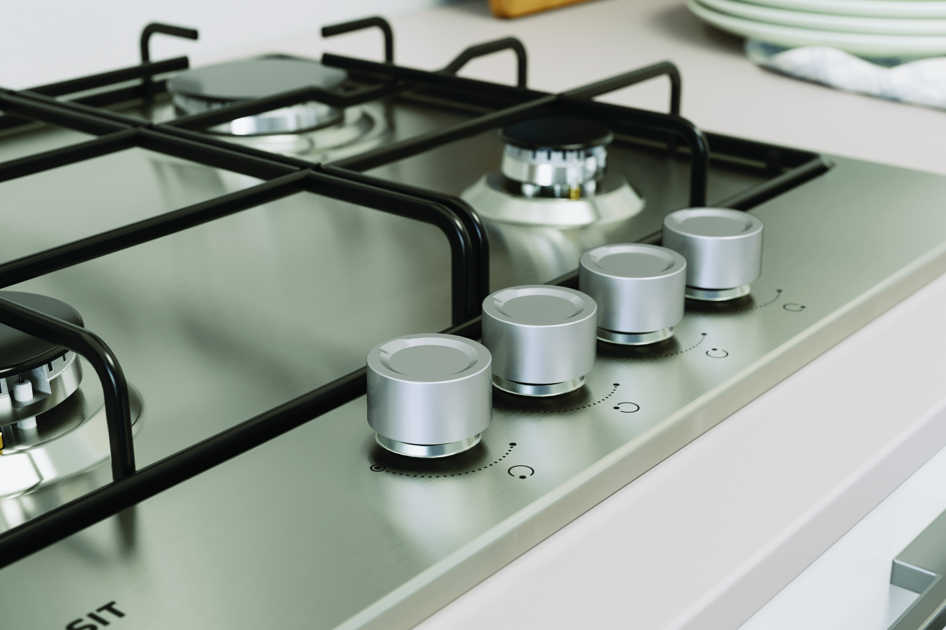 Indesit THP 642 IX/I 1 piano gas inox 60cm 4 fuochi griglie smaltate. Colore del prodotto: Acciaio inox, Posizionamento dell'apparecchio: Da incasso, Dimensione della larghezza del piano cottura: 60 cm. Tipo di controllo: Manopola, Posizione di controllo: Frontale. Potenza aggregata (gas): 7300 W, Tensione di ingresso AC: 220-240 V, Frequenza di ingresso AC: 50/60 Hz. Tecnologie Indesit (cottura): Flame Failure Safety Device. Larghezza: 580 mm, Profondità: 510 mm, Altezza: 56 mm