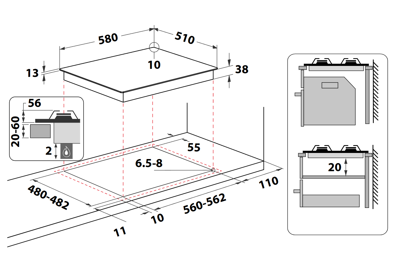 | Dimensione della larghezza del piano cottura | 60 cm |