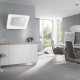 Sulle cappe aspiranti con aspirazione perimetrale i filtri antigrasso metallici sono nascosti dietro una copertura decorativa. Le fumane derivanti dalla cottura vengono aspirate sia sui bordi esterni che nell'area centrale della cappa in caso di cappe con aspirazione perimetrale multizona.