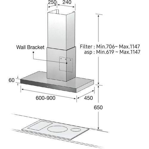 Samsung NK36M3050PS. Potenza massima di estrazione: 512 m³/h, Tipo di estrazione: Aspirante/Filtrante, Classe di efficienza dinamica del fluido: D. Tipo: Cappa aspirante a parete, Colore del prodotto: Acciaio inox, Tipo di controllo: Pulsanti. Tipo di filtro antigrasso: Alluminio. Potenza lampadina: 28 W, Numero di lampadine: 2 lampadina(e), Illuminamento: 155 lx. Consumo energetico annuo: 139,6 kWh, Classe di efficienza energetica (vecchia): D