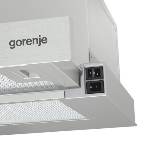 Gorenje TH60E3X. Potenza massima di estrazione: 350 m³/h, Tipo di estrazione: Aspirante/Filtrante, Classe di efficienza dinamica del fluido: E. Tipo: Integrato, Colore del prodotto: Acciaio inossidabile, Materiale della scocca: Acciaio inossidabile. Tipo di filtro antigrasso: Alluminio. Classe efficienza energetica: C, Consumo energetico annuo: 48,4 kWh, Carico di collegamento: 110 W. Larghezza: 600 mm, Profondità: 170 mm, Altezza (min.): 30,6 cm