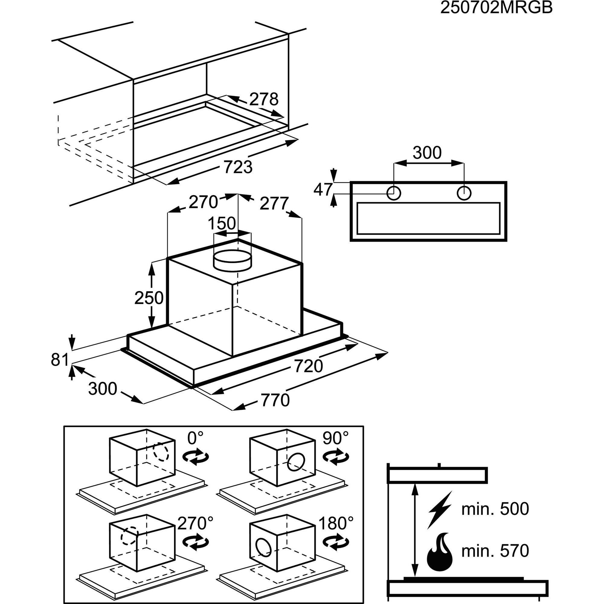 | Distanza minima dal piano cottura elettrico | 50 cm |