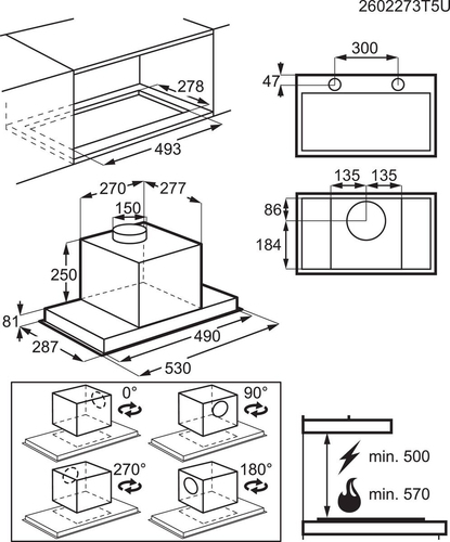 Electrolux EFG516X Serie 600 Hob2Hood 54 cm. Tipo di estrazione: Aspirante/Filtrante, Classe di efficienza dinamica del fluido: D, Classe di efficienza luminosa: A. Tipo: Integrato, Colore del prodotto: Acciaio inox, Tipo di controllo: Pulsanti. Tipo di filtro antigrasso: Alluminio, Numero di filtri: 1 pz. Numero di lampadine: 2 lampadina(e), Tipo di lampada: LED, Posizione dell'illuminazione: Frontale. Consumo energetico annuo: 97 kWh, Scala di efficienza energetica: Da A+++ a D, Tensione di ingresso AC: 220-240 V